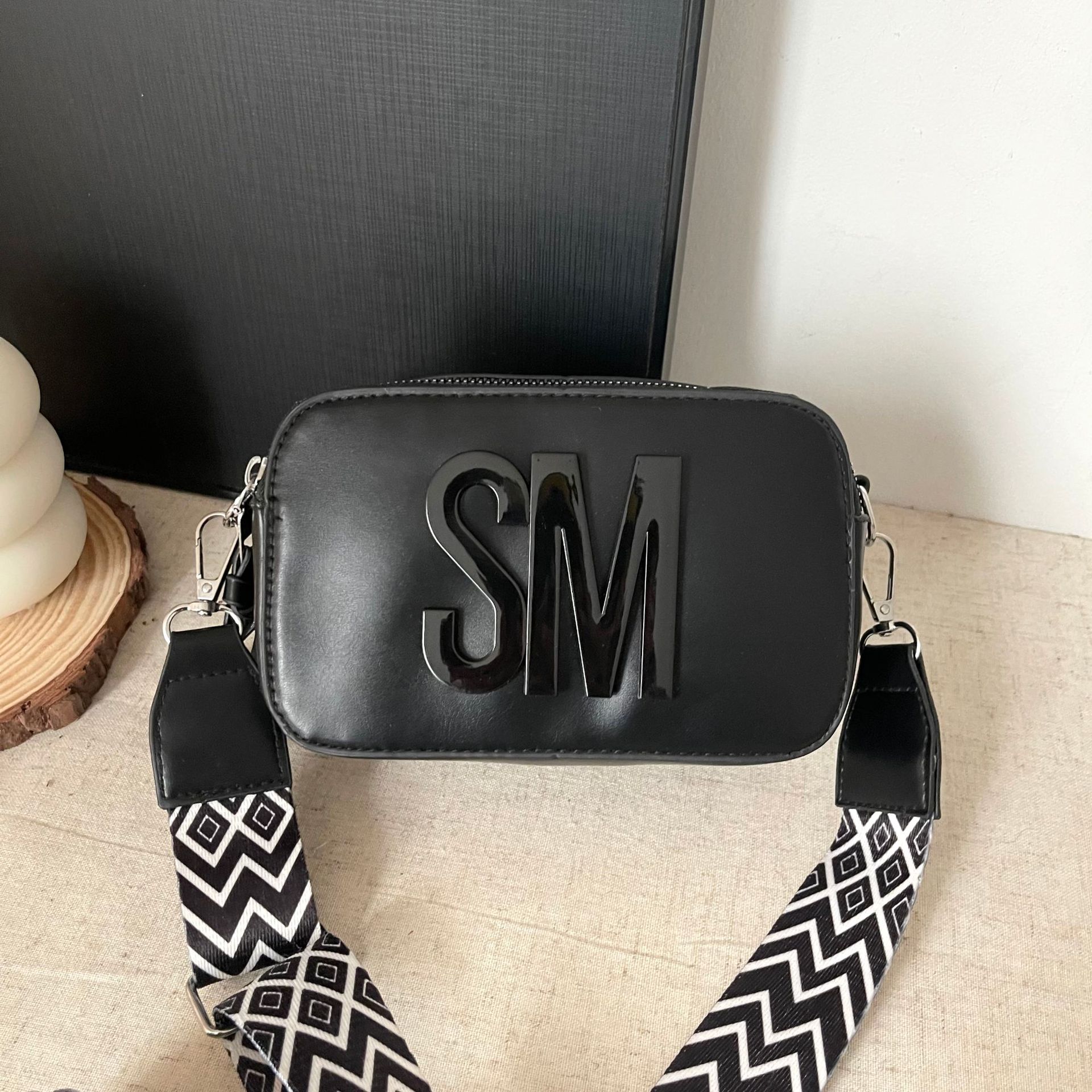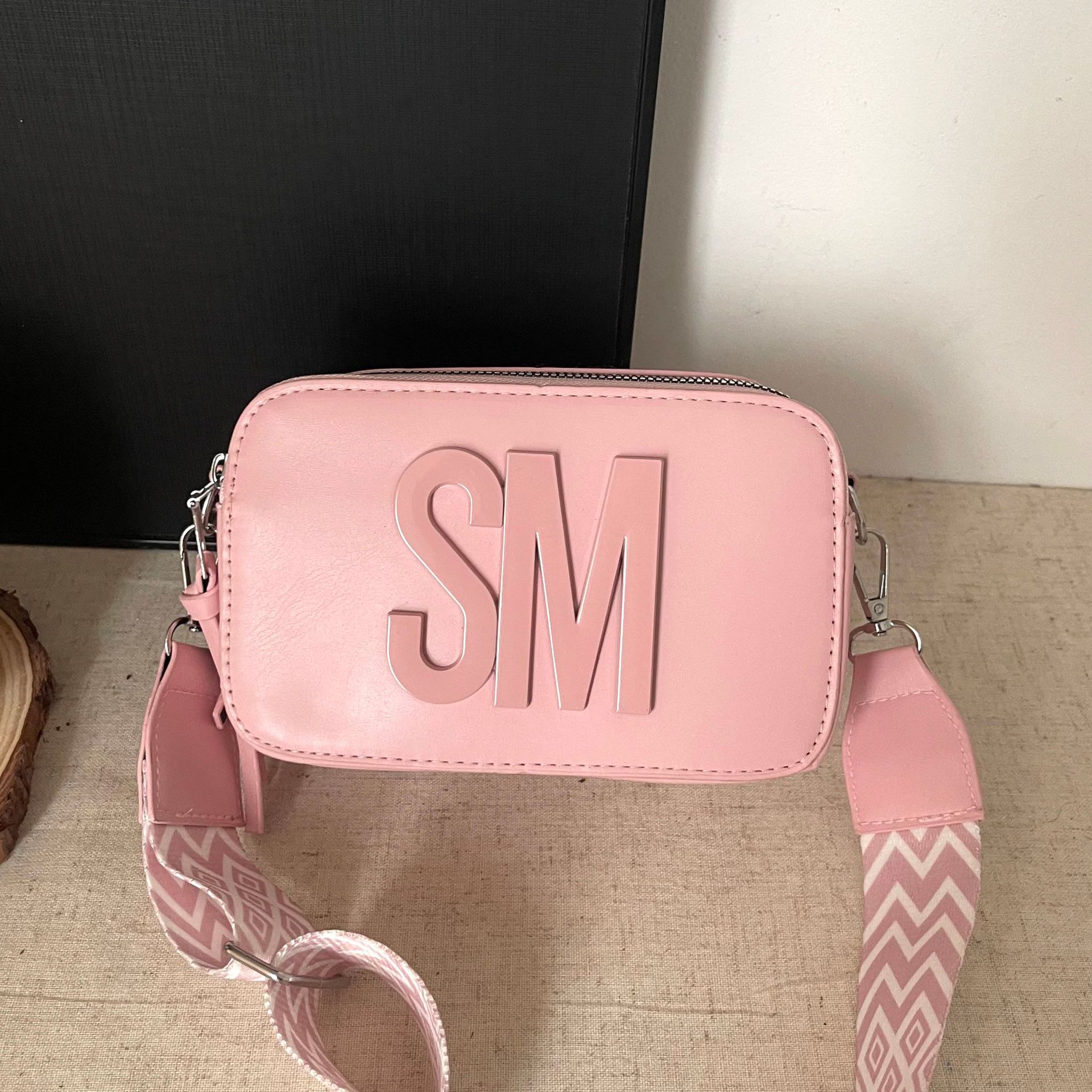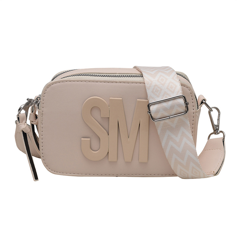 跨境潮流百搭包包质感小方包单肩相机包轻奢斜挎包宽肩带字母女包