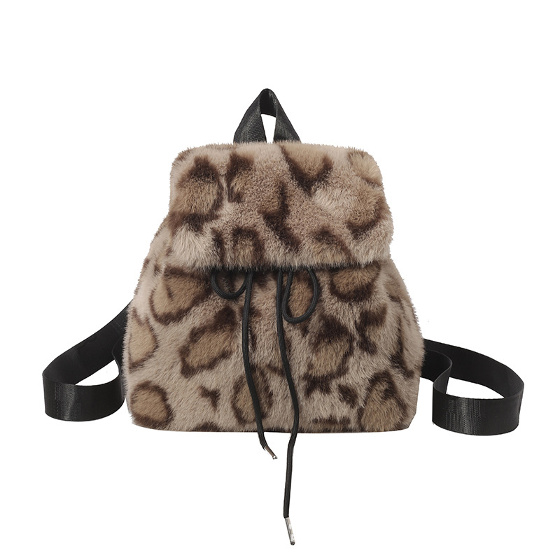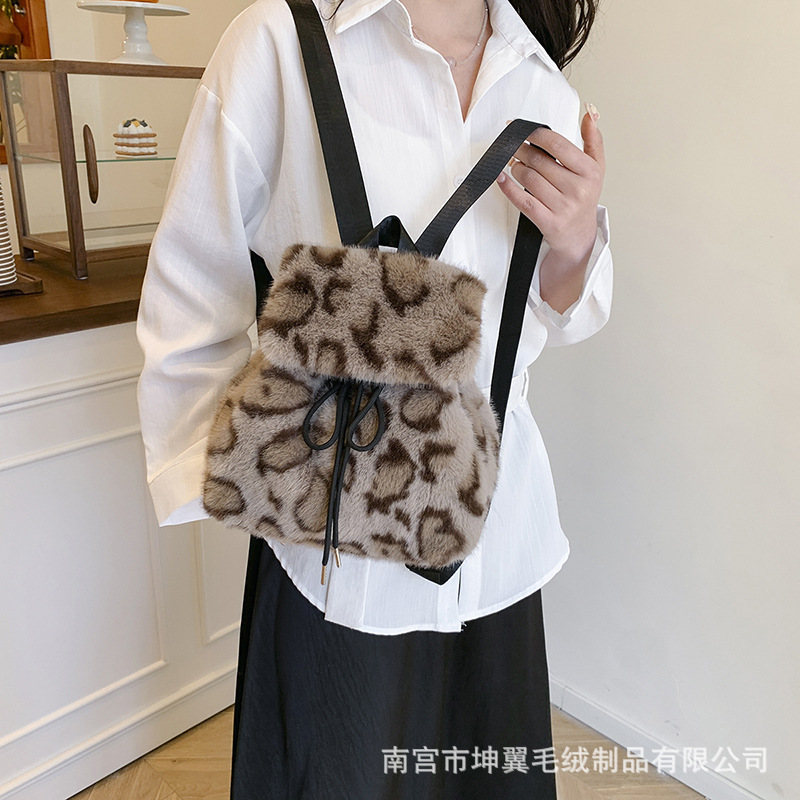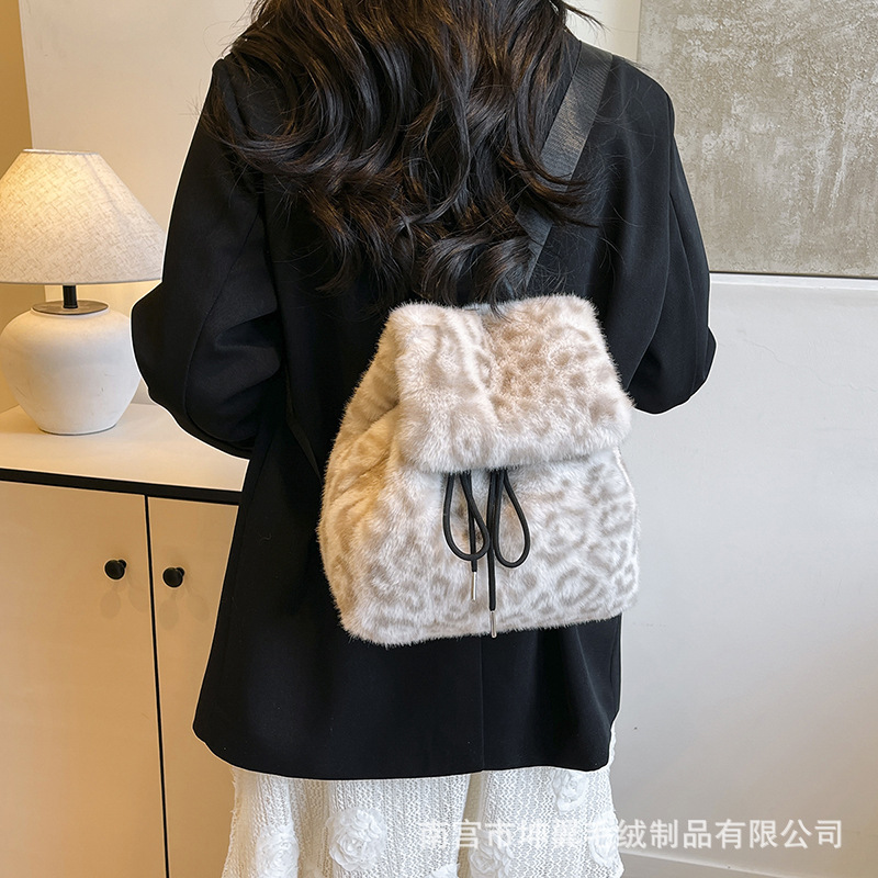 跨境新款休闲复古毛毛包 女款百搭韩版高级感时尚小众豹纹双肩包