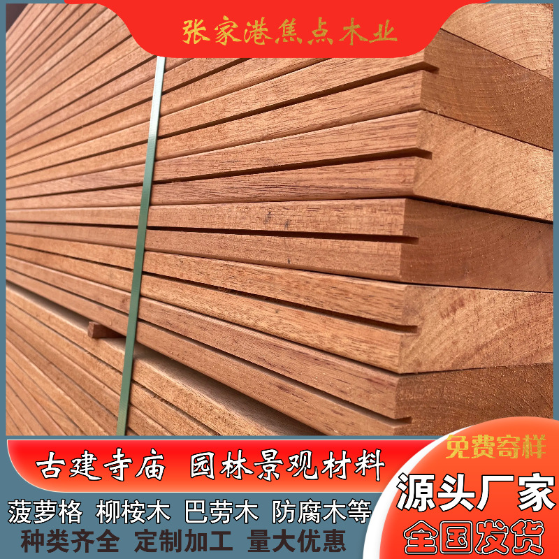 厂家销售缅甸柚木地板料 唐木木屋别墅 重蚁木户外长廊柳桉木板材