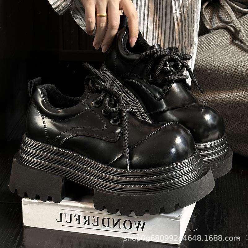 跨境复古英伦风乐福鞋2025早春新款松糕底增高厚底百搭擦色小皮鞋