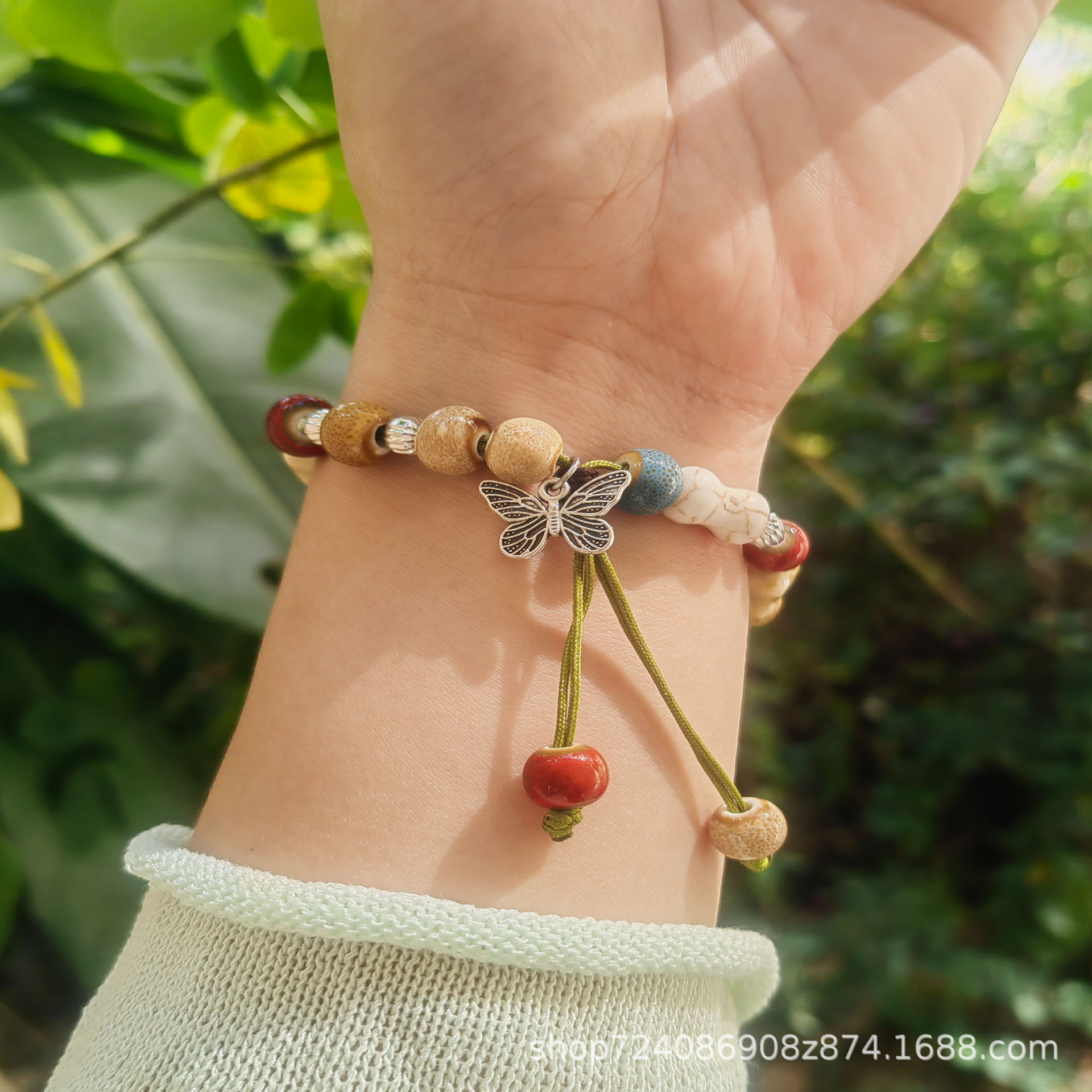 彩陶瓷珠古银蝴蝶编织(最小手围15cm)