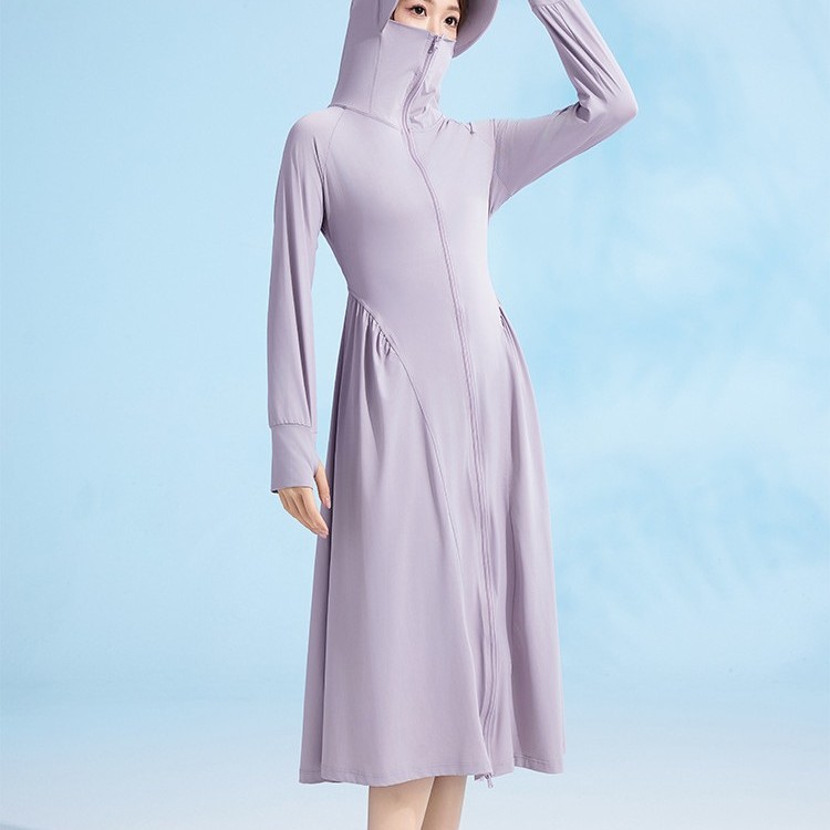 2025修身防晒紫外线衣女连帽夏季外套长款冰丝新款透气连衣裙显瘦