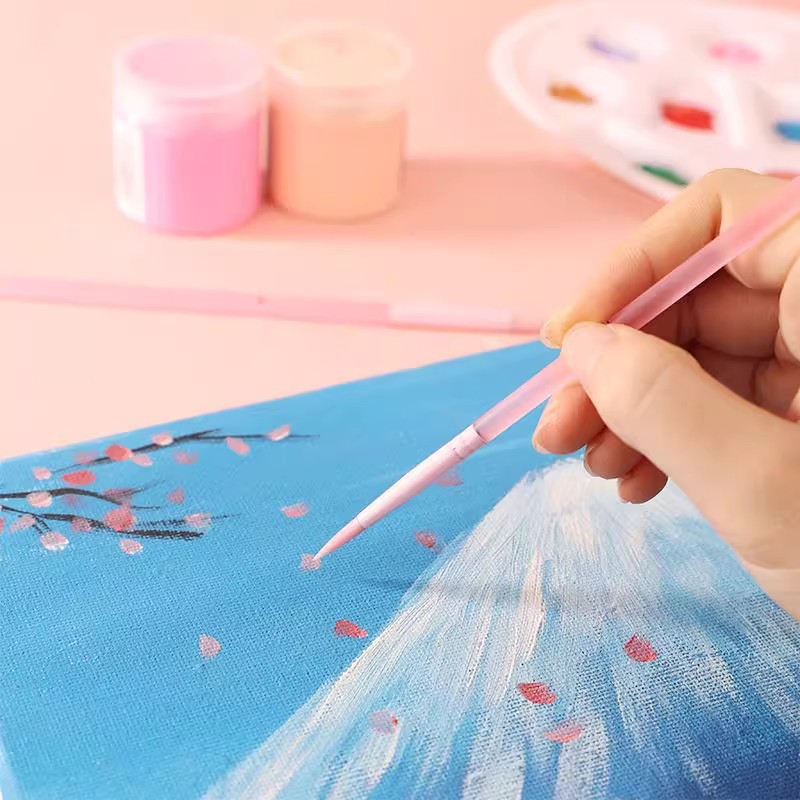 粉色透明杆数字油画专用2号4号套装精准勾线填色笔美术厂家直销笔
