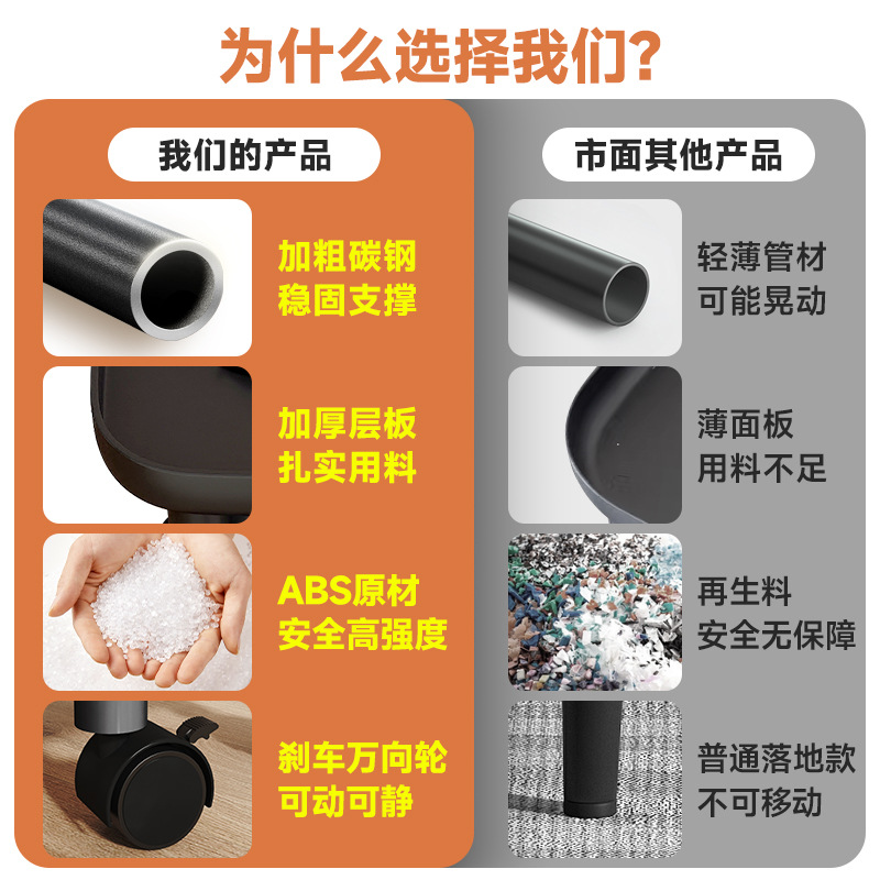 | 颜色 | 【双层-移动万向轮】温柔粉-PP支架 | 颜色 | 【双层移动万向轮-碳素钢架加固】静谧黑 |