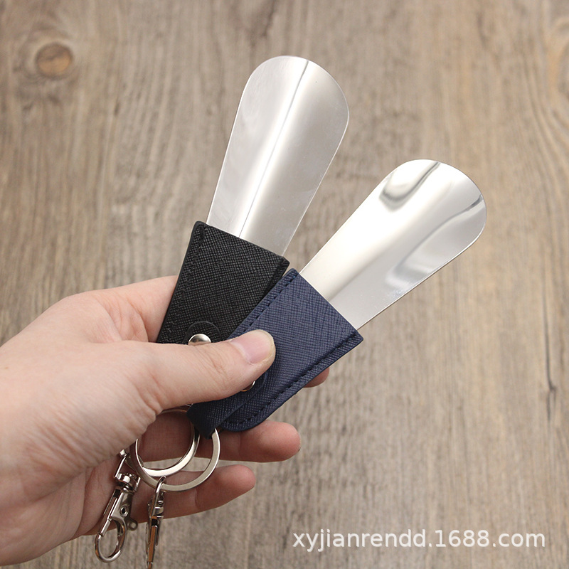 现货外出便捷虾扣不锈钢pu革鞋拔子老人孕妇轻松家用懒人穿鞋神器