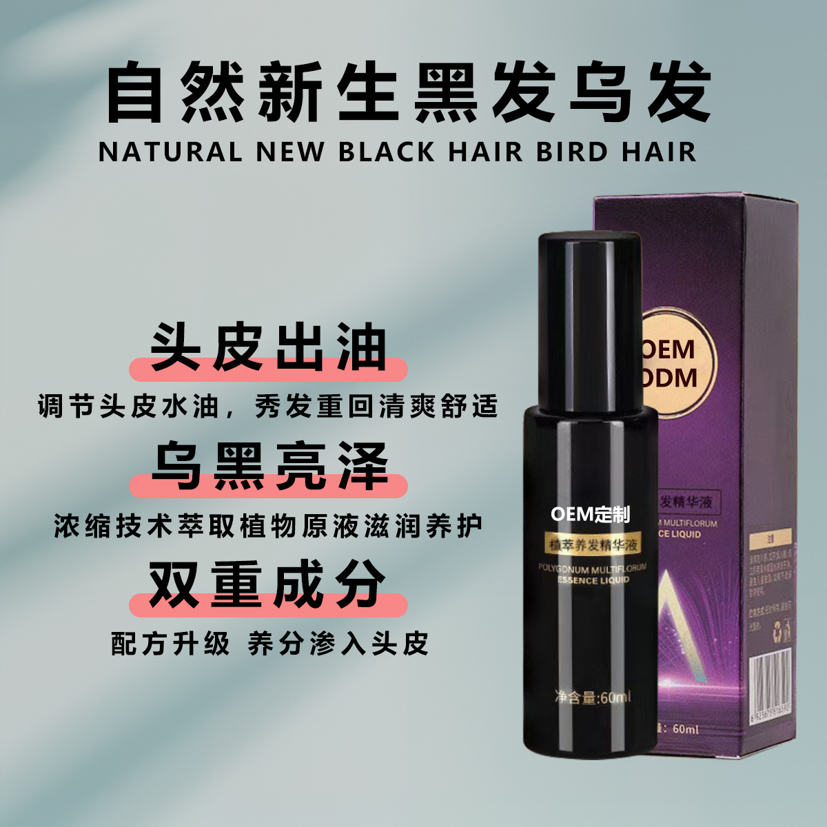 现货黑灵芝何首乌黑发精华液植萃养发精华液控油护发白发转黑喷雾