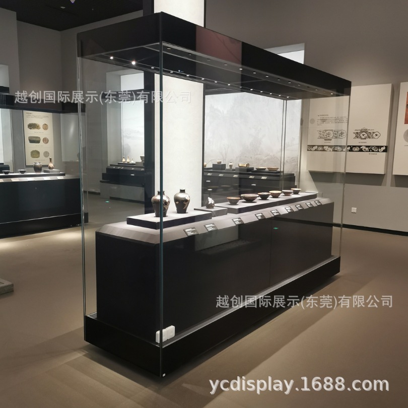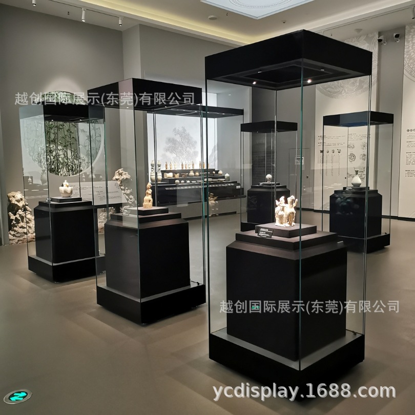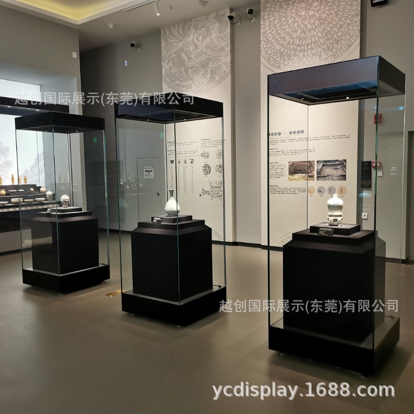 外贴玻璃工艺博物馆独立柜|黑色博物馆高柜|古瓷器展柜生产工厂