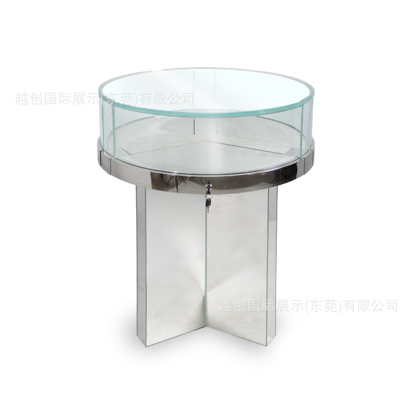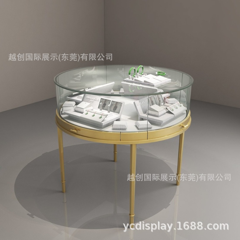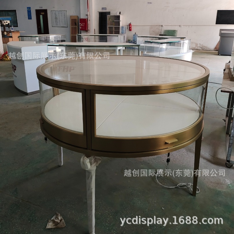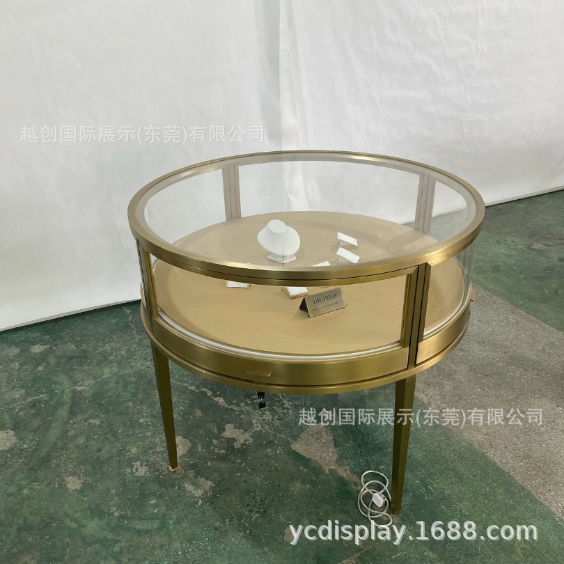 圆型钢珠宝展柜【中央柜定制】拉丝钛金饰品柜台工厂定玻璃门