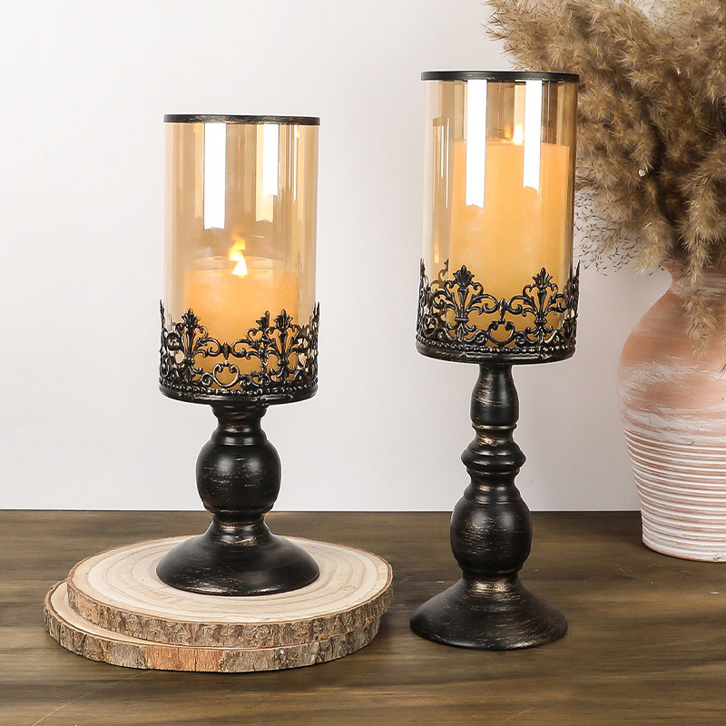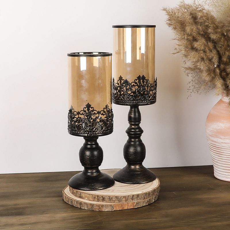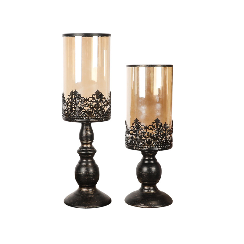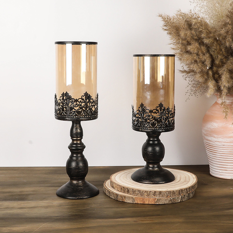 蜡烛台家居装饰工艺品摆件欧式摩洛哥玻璃复古铁艺烛台婚庆香薰