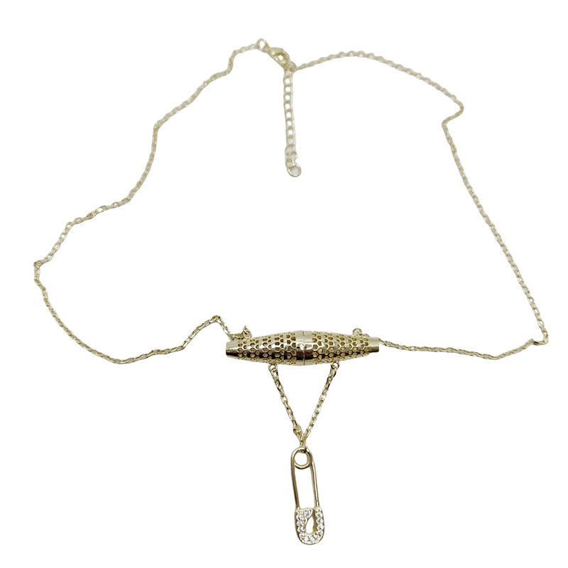 时尚简约个性通花橄榄挂件吊坠项链女小众设计感锁骨链装饰饰品