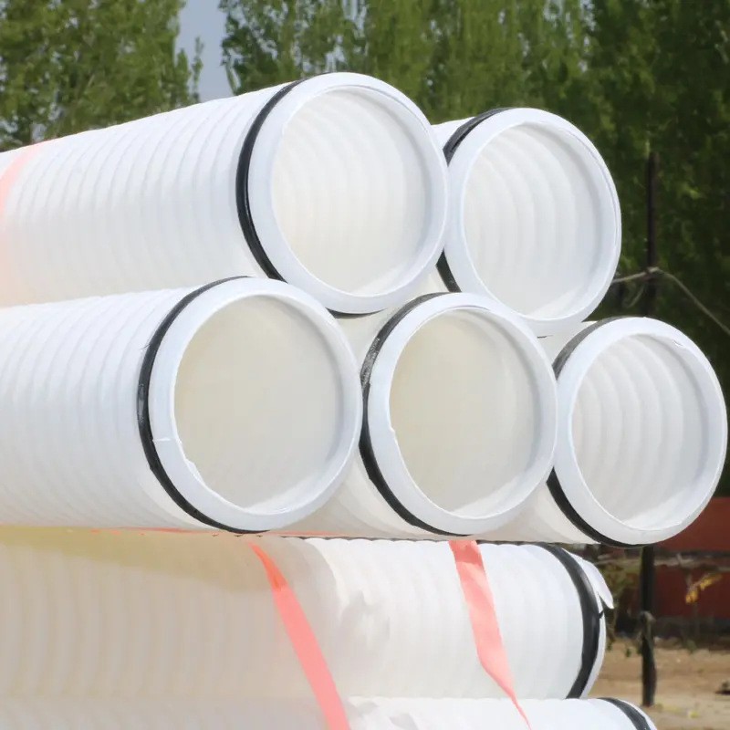 白色双壁波纹管生产厂家 打孔渗水缠布排盐管 PE通讯波纹管