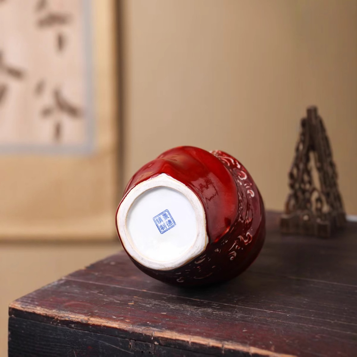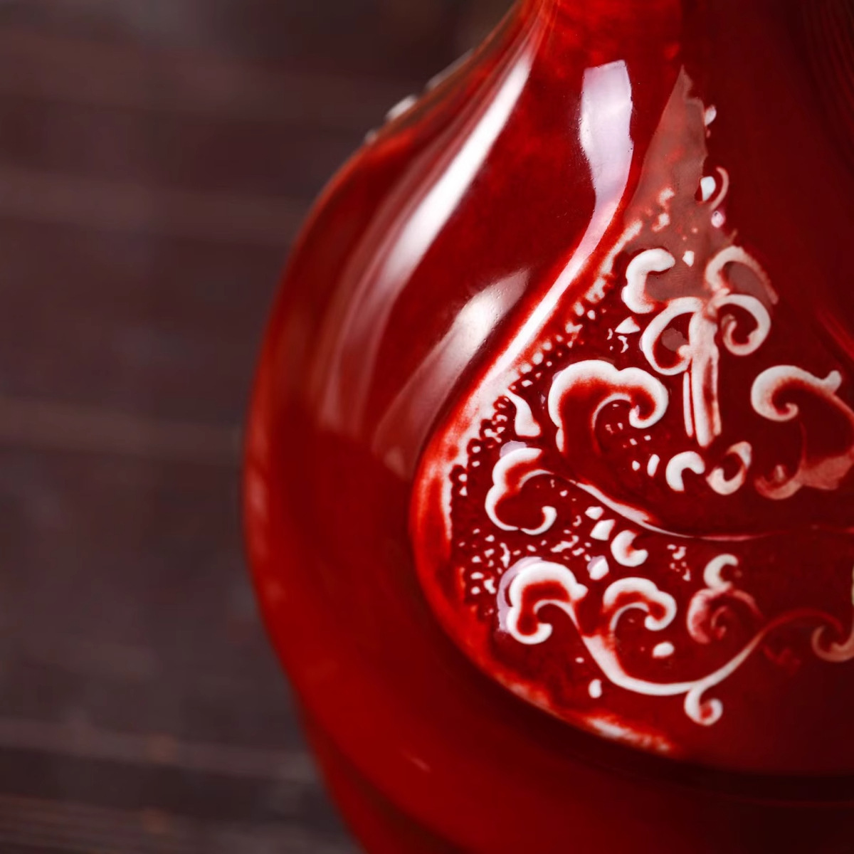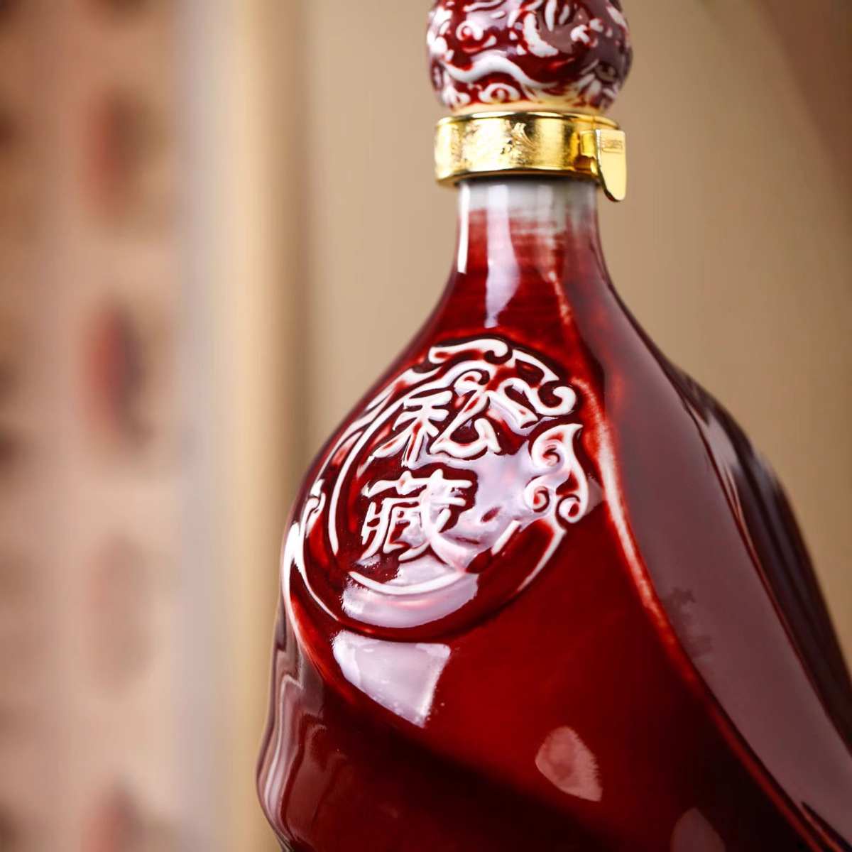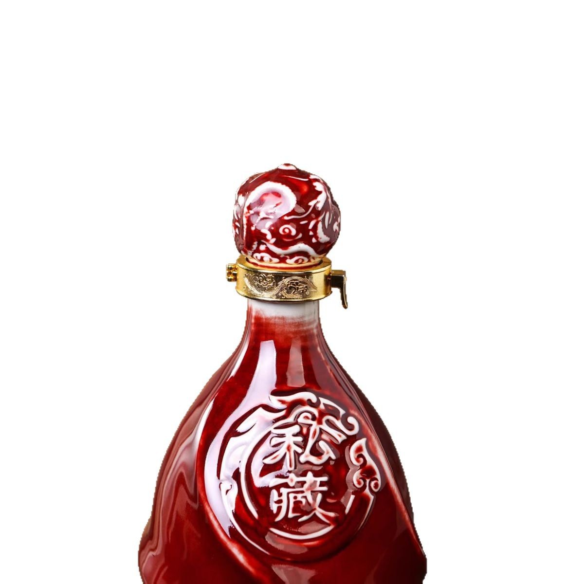 厂家现货陶瓷酒瓶空瓶子高档3斤/1.5L私藏红色浮雕创意酒坛酒罐装