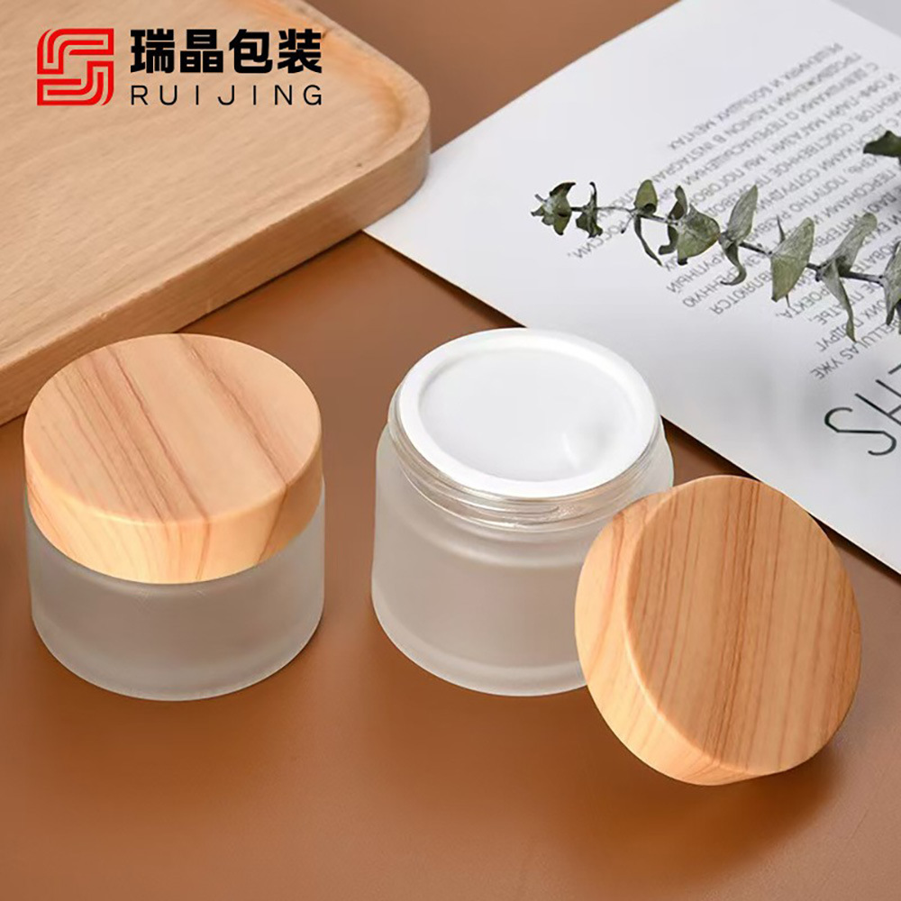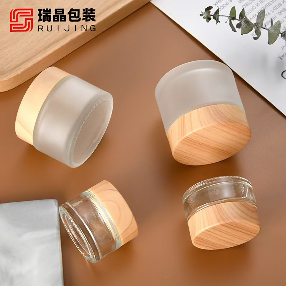 膏霜瓶化妆品套装瓶 木纹盖滚珠乳液瓶 面霜仿竹木盖水转印分装