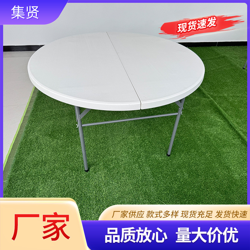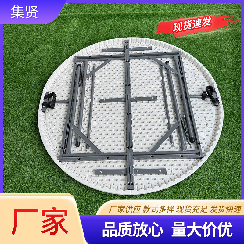 家用简易圆形折叠餐桌酒店民宿便携式塑料桌户外夜市烧烤大圆桌