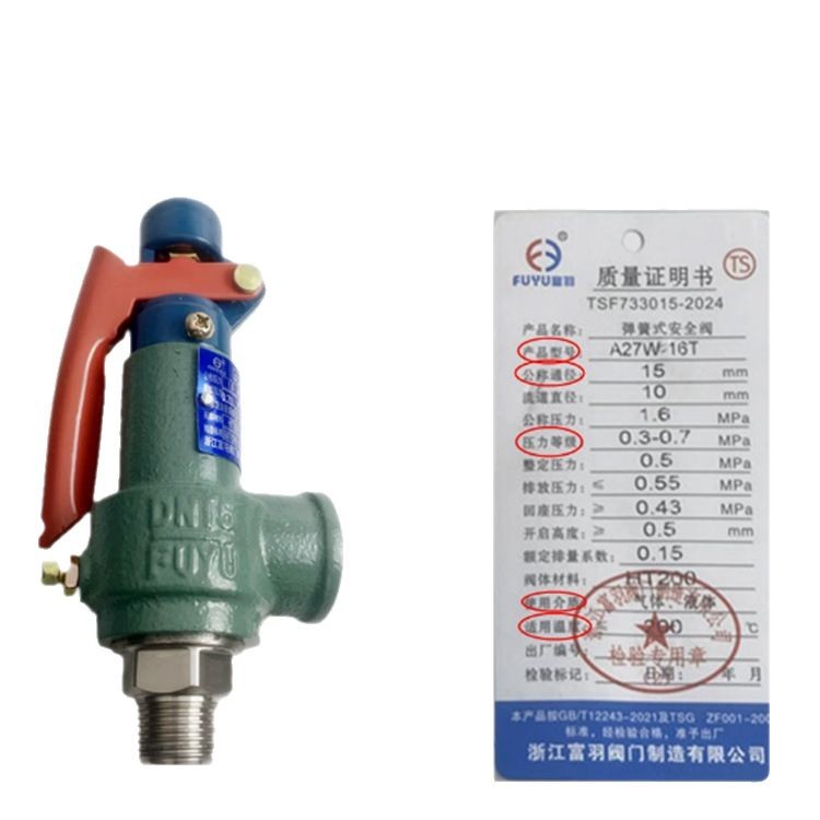 全启式蒸汽锅炉压力弹簧式安全阀泄压阀配件A27-16排气蒸汽专用