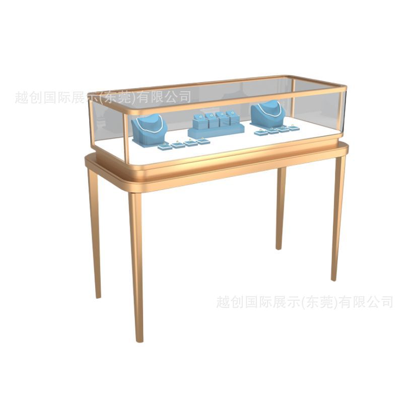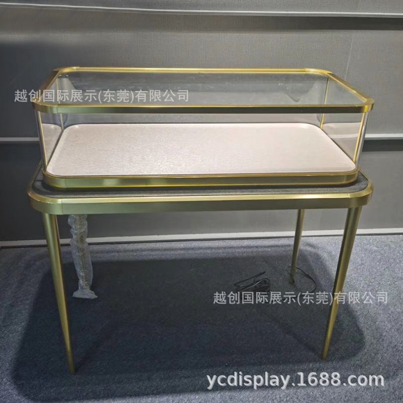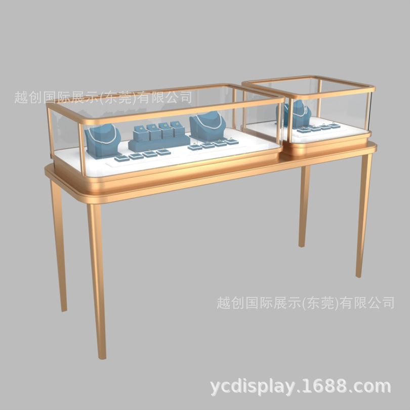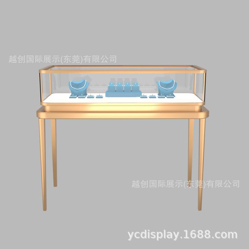 不锈钢珠宝展柜广东高档金属展柜工厂【定制金色彩宝钻石柜台】