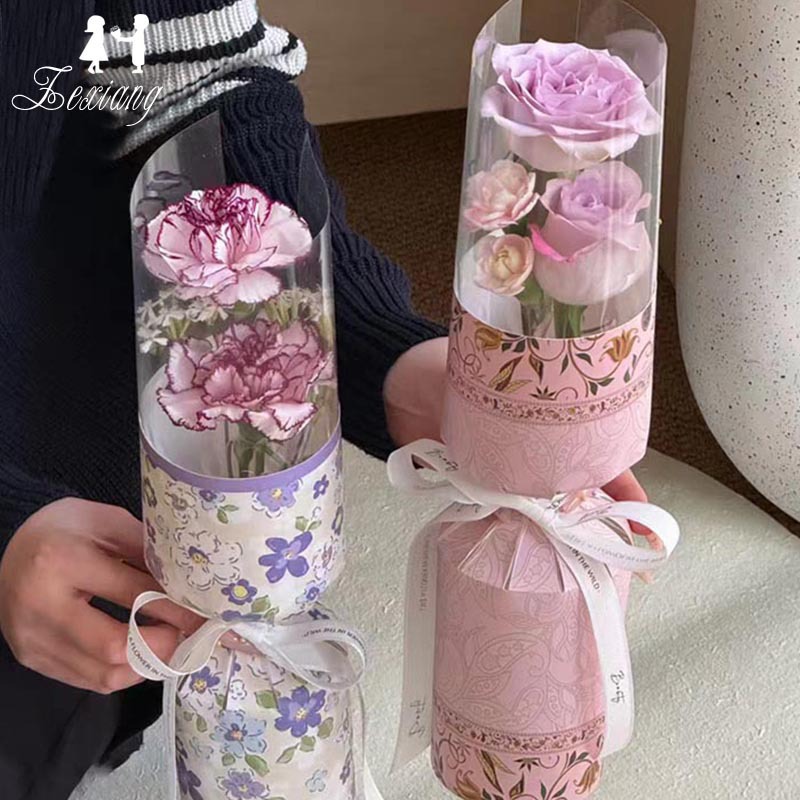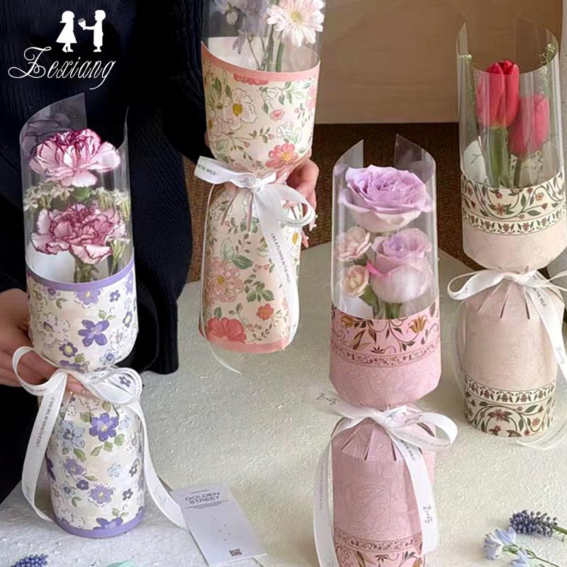母亲节单支康乃馨花束定型片小碎花鲜花包装纸花店一体成型包装纸