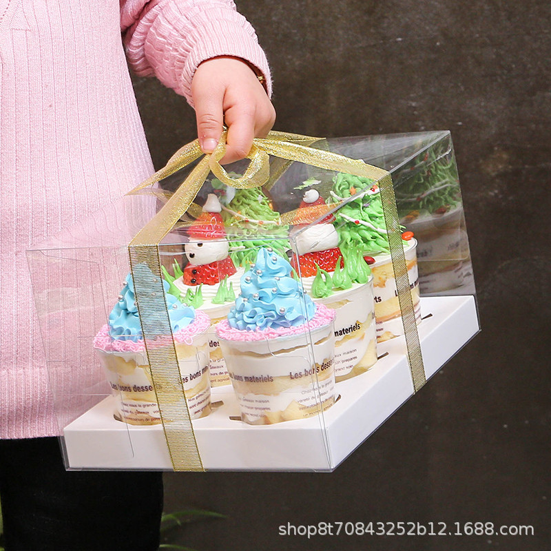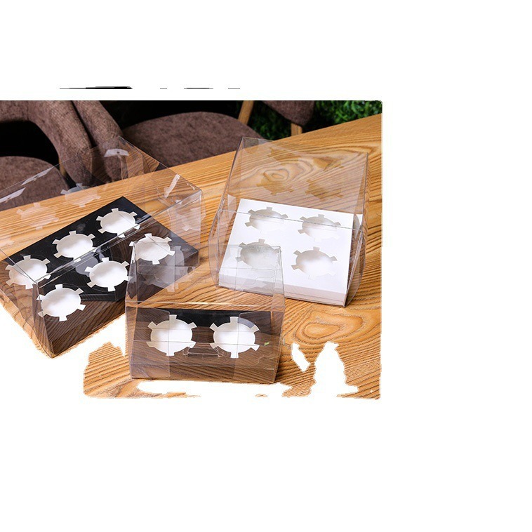 透明杯子蛋糕盒 2 4 6 12粒杯子打包盒马芬杯Ins风纸杯透明包装盒