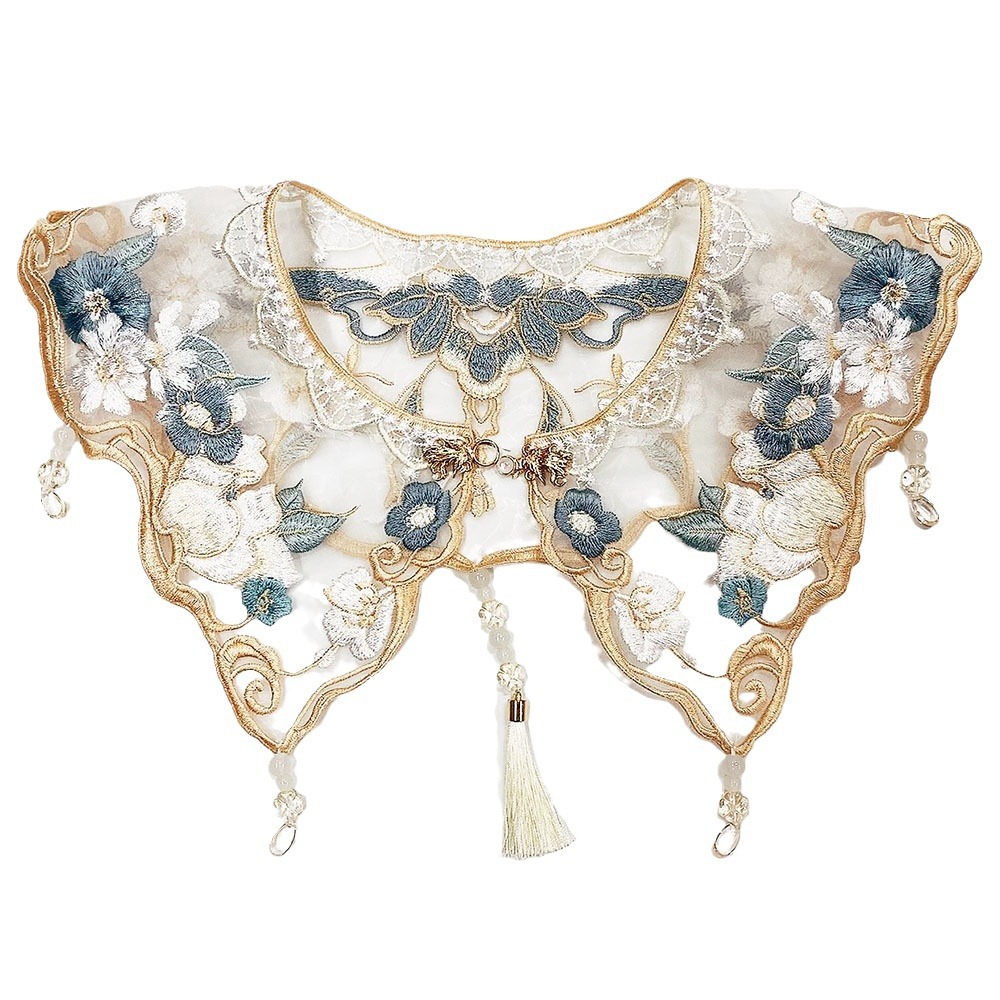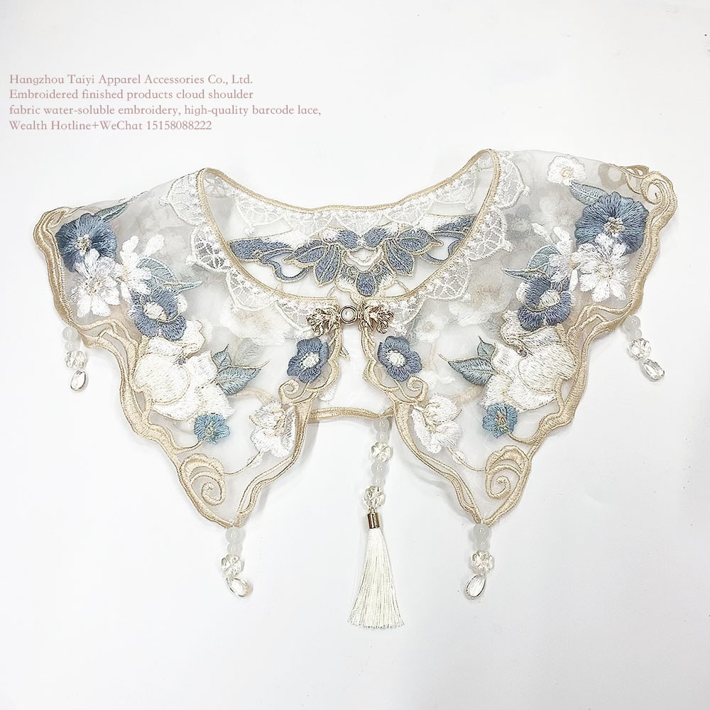 直销钉珠云肩欧根纱绣花镂空假领子刺绣女装小披肩领花蕾丝花边服