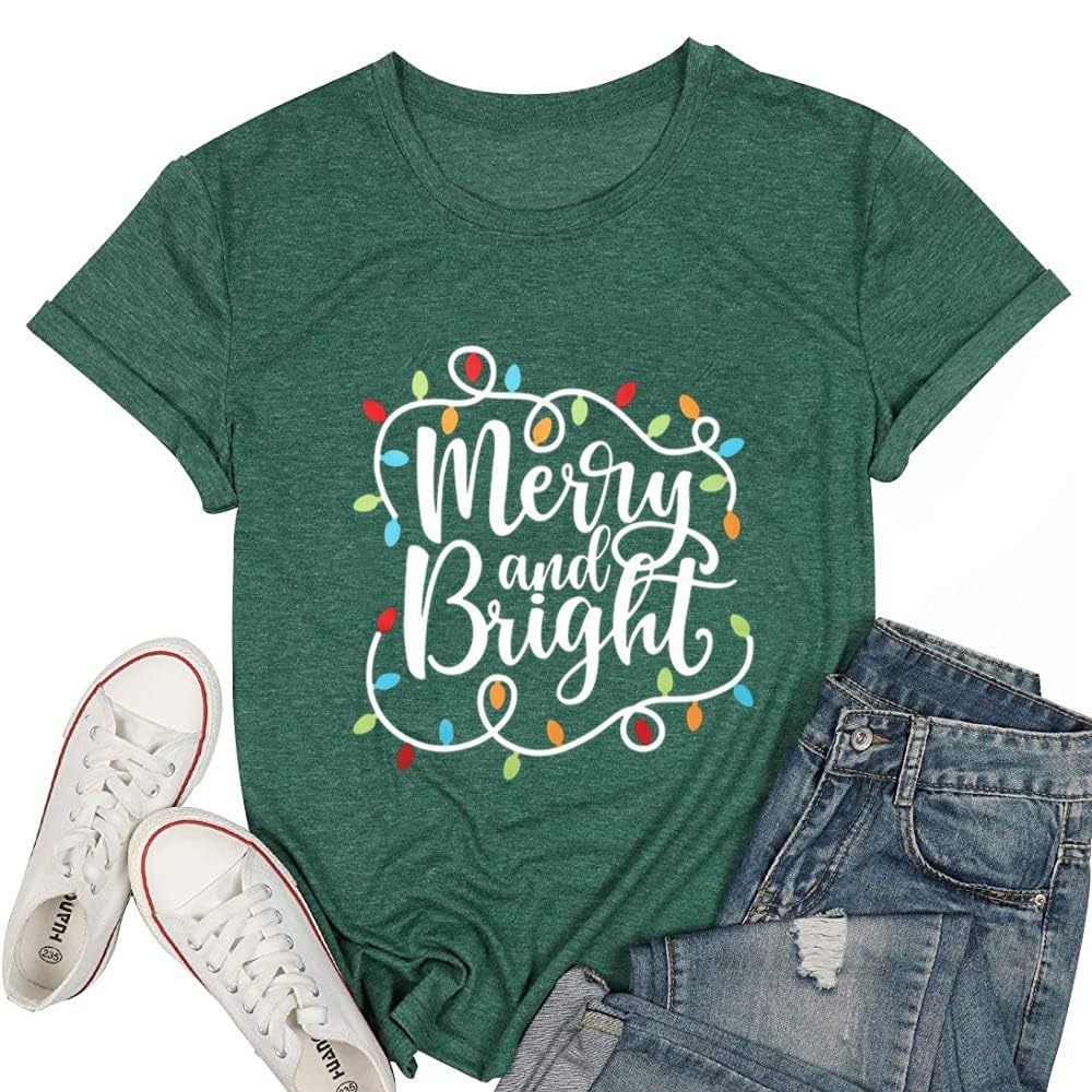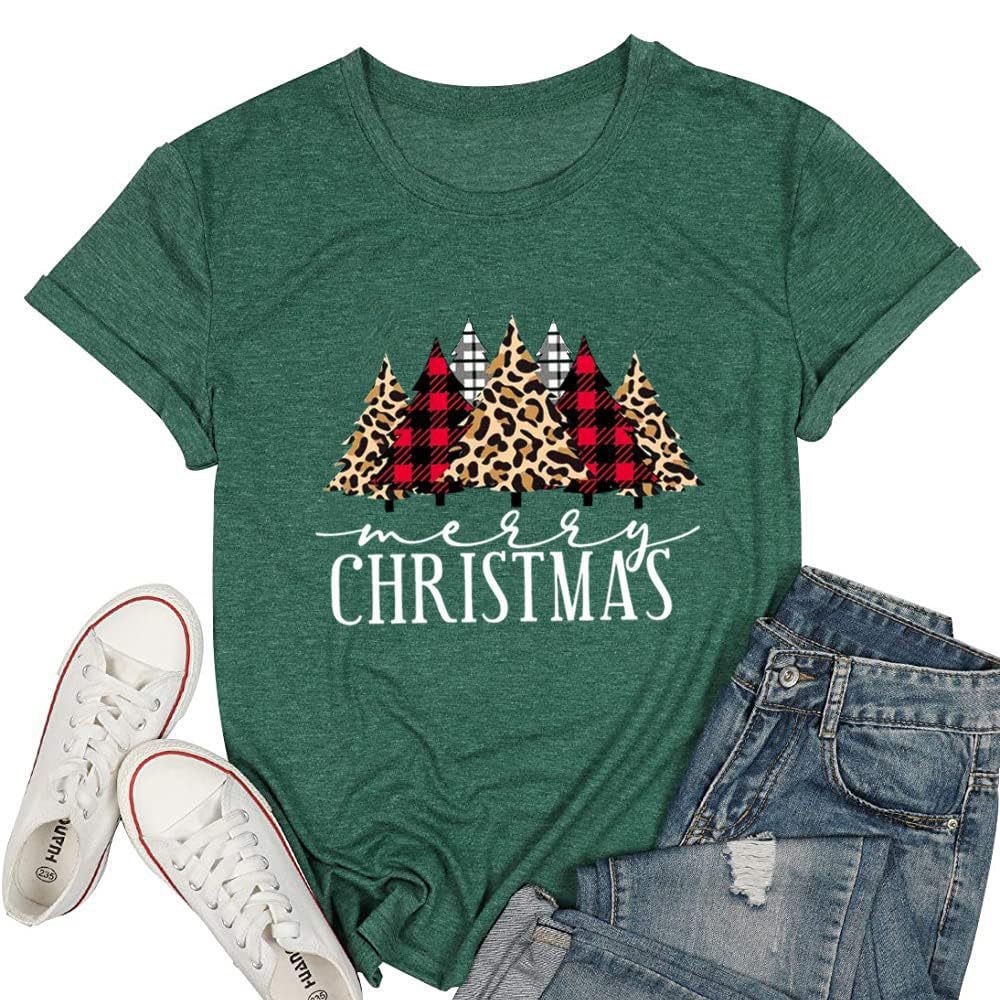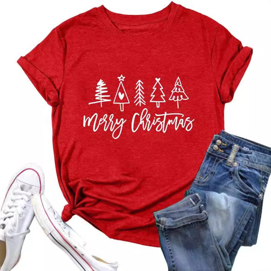 跨境圣诞节系列3d印花套头上衣休闲女士圆领短袖宽松T恤