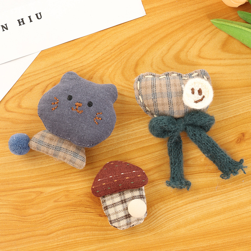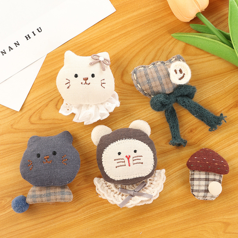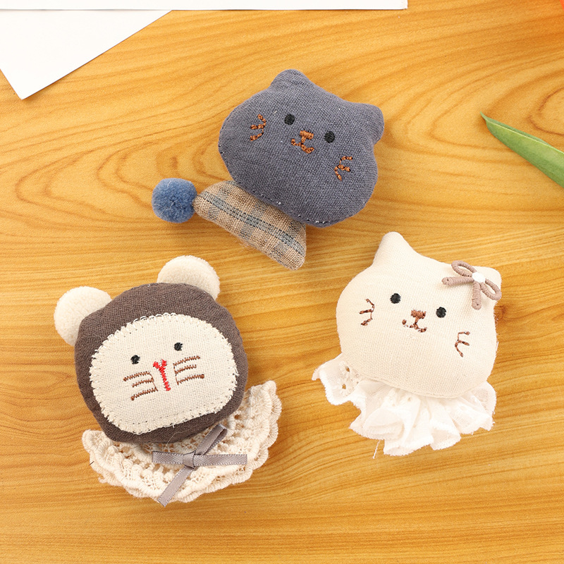 新款布艺充棉动物猫咪爱心花儿童发夹挂件胸针饰品配件服装辅料