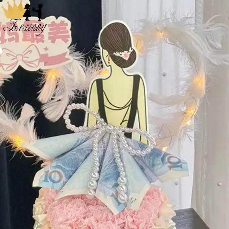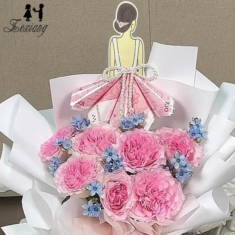 热销母亲节卡片公主裙有钱花花束装饰卡片DIY花店鲜花包装材料