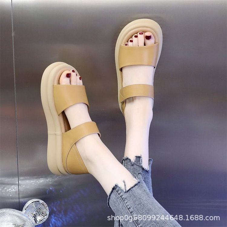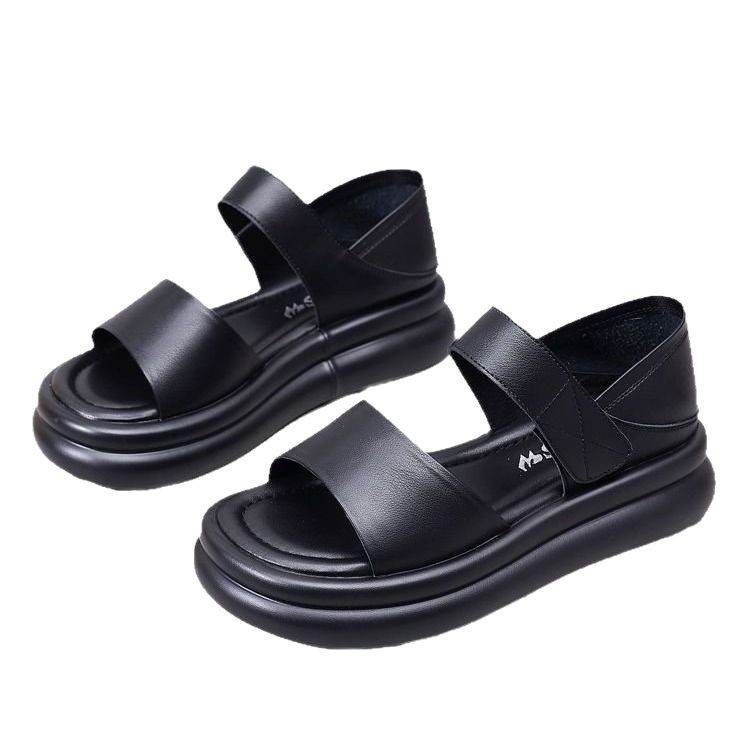 跨境厚底凉鞋女2024夏季新款百搭魔术贴坡跟中跟复古松糕罗马凉鞋