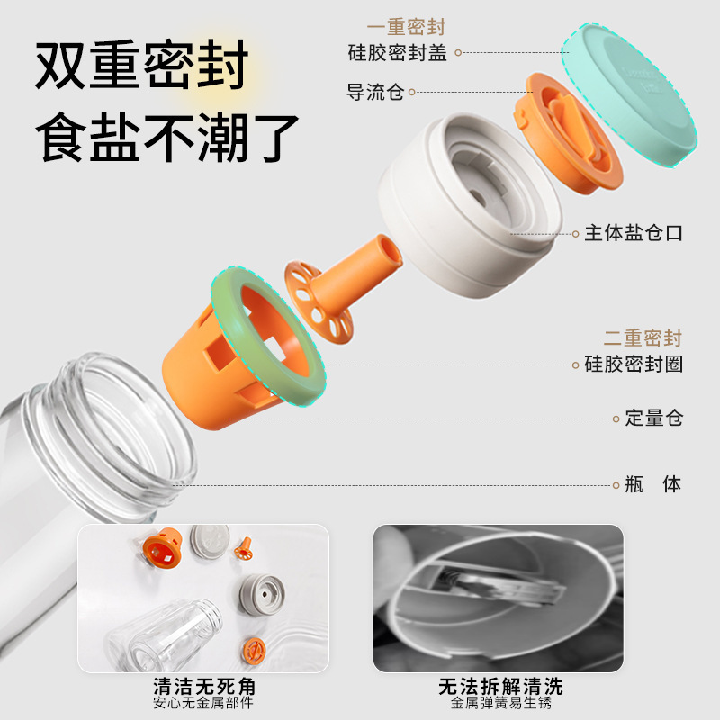 新品定量调味罐厨房盐罐玻璃调味瓶防潮密封调料罐家用调料盒料瓶