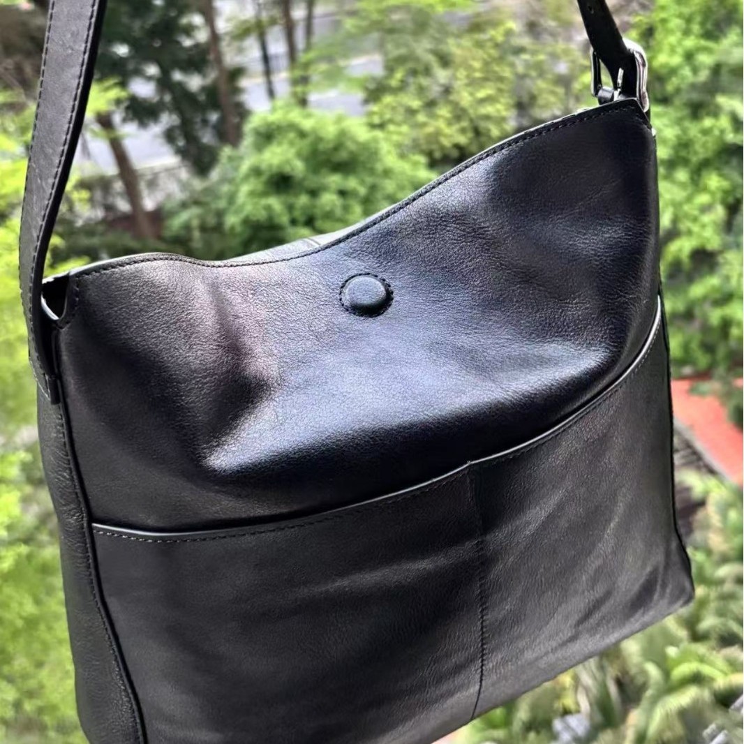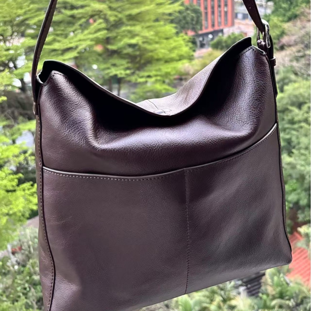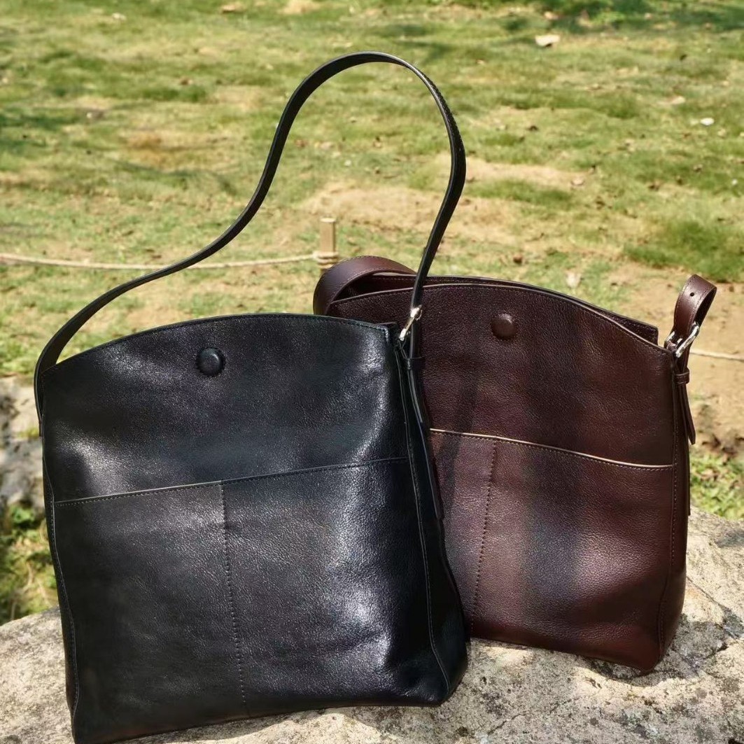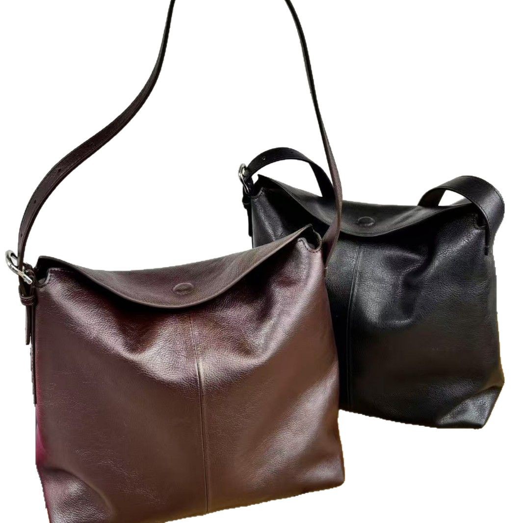 真皮百搭复古托特包女慵懒风软皮质感单肩包韩版大容量简约斜挎包
