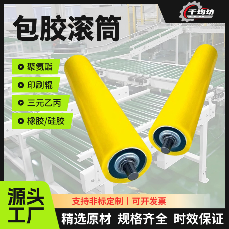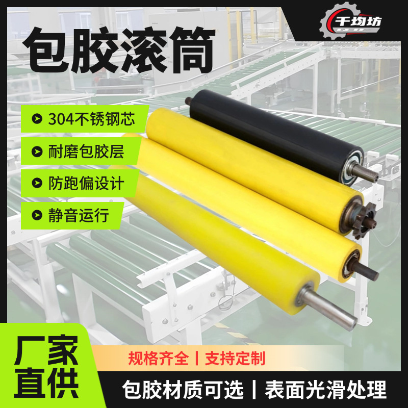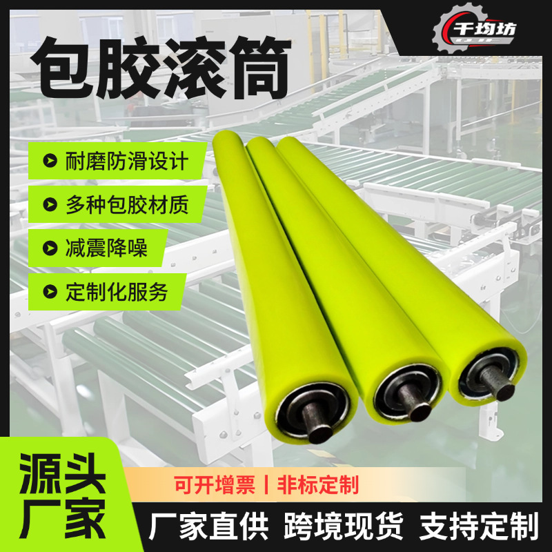 源头工厂批发包胶滚筒胶轮耐磨PU胶辊不锈钢流水线镀锌单双排胶辊