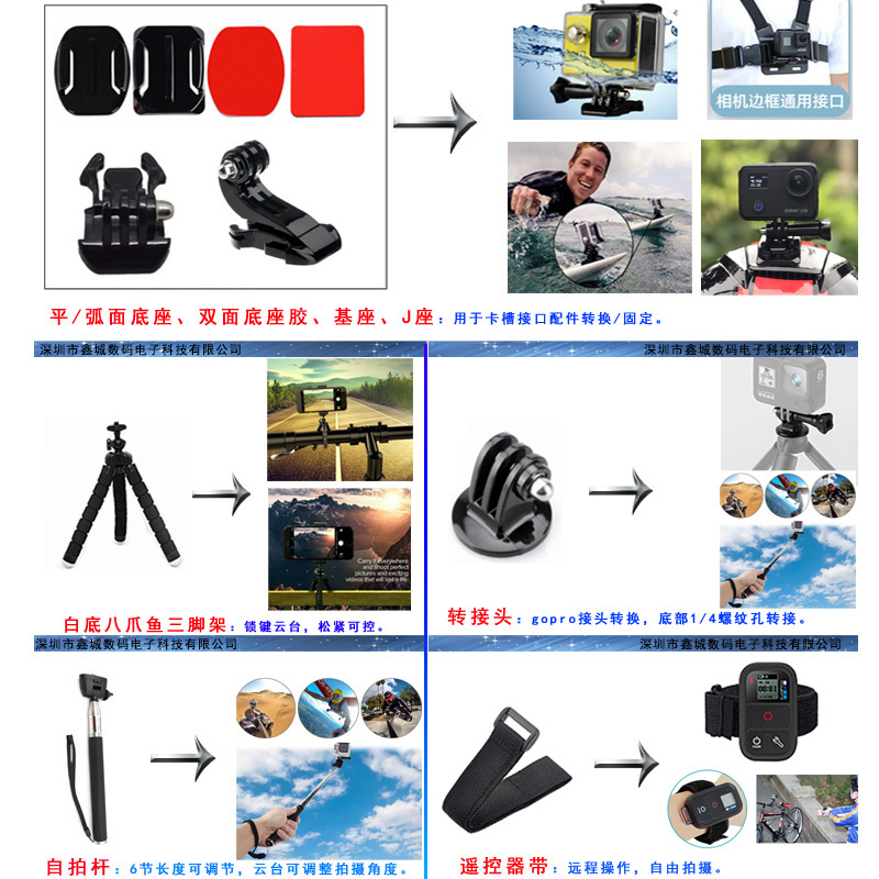 主营产品:运动相机手机配件,Gopro配件,手机吸盘支架,车载支架、