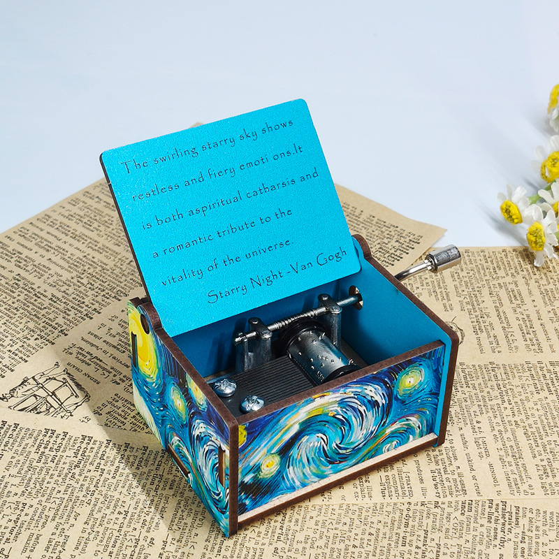 彩绘星空八音盒个性创意儿童玩具木质手摇音乐盒精美摆件节日礼品