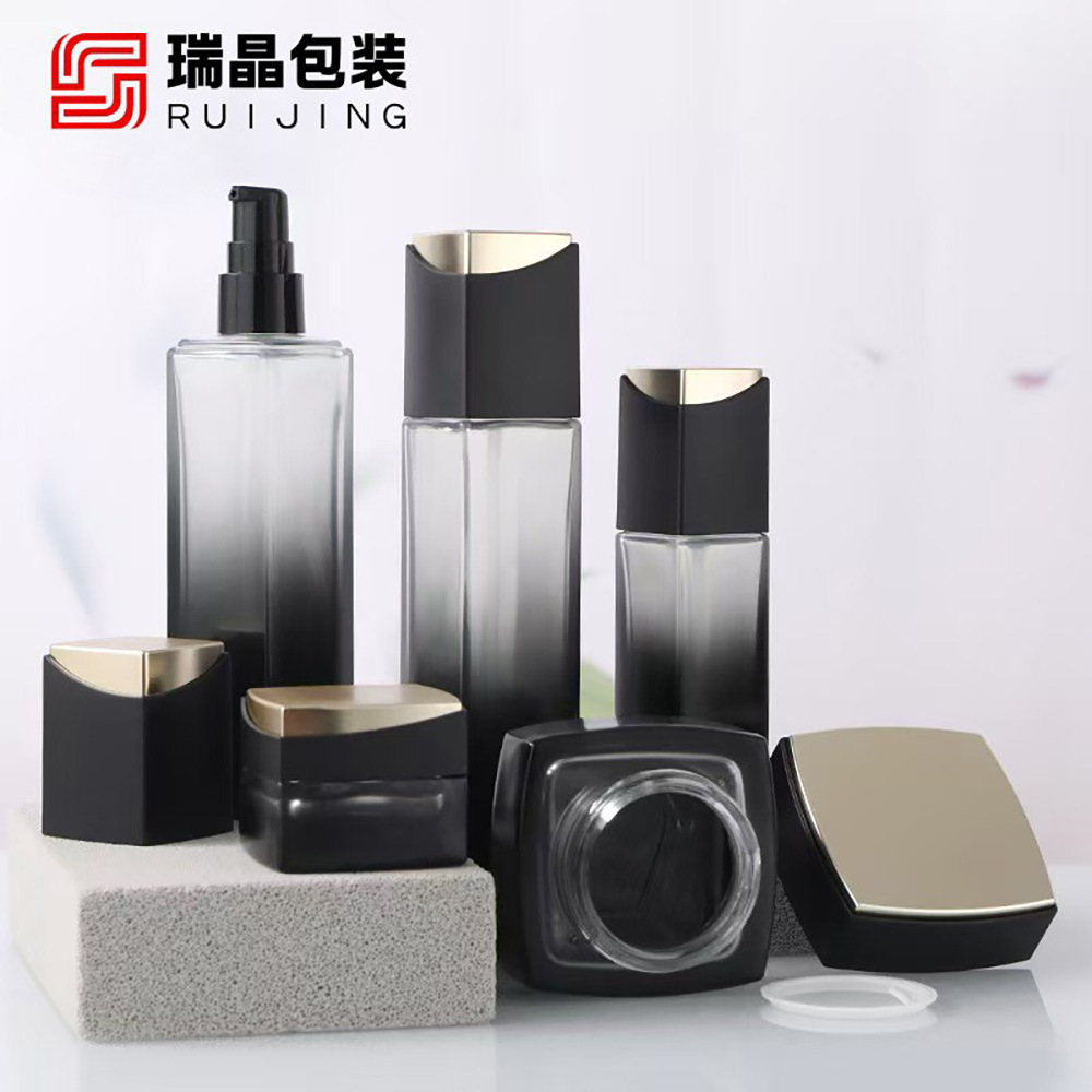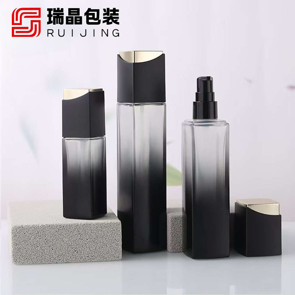 新款方形钻石盖套装瓶100ml按压乳液精华面霜分装瓶护肤品玻璃瓶