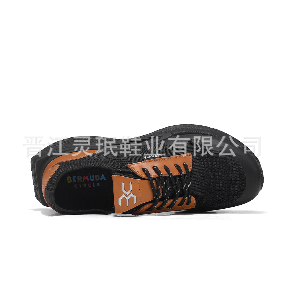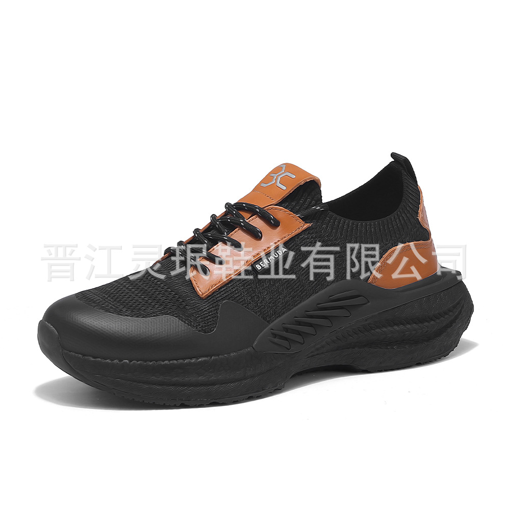 2025厂家男鞋皮面飞织透气百搭休闲鞋舒适轻便缓震户外跑步男鞋