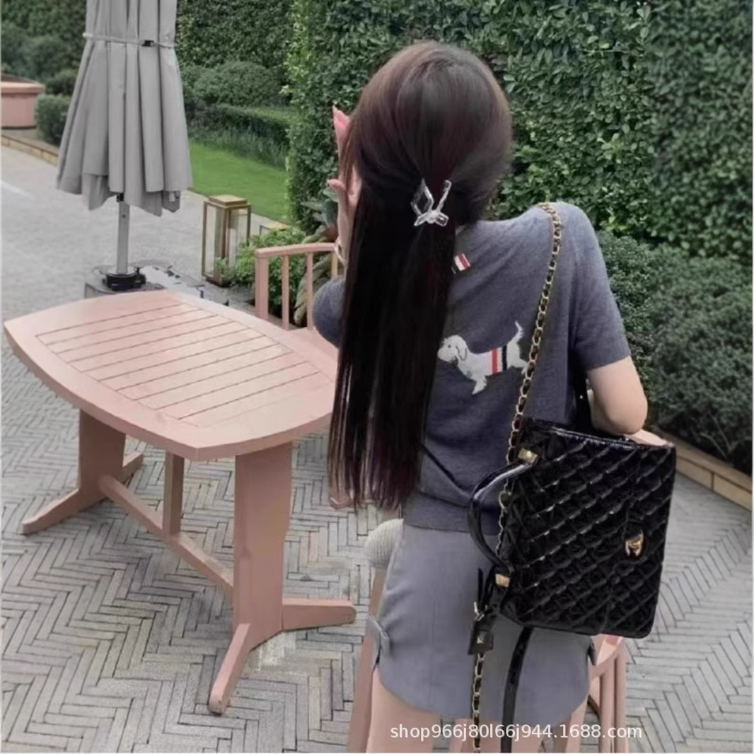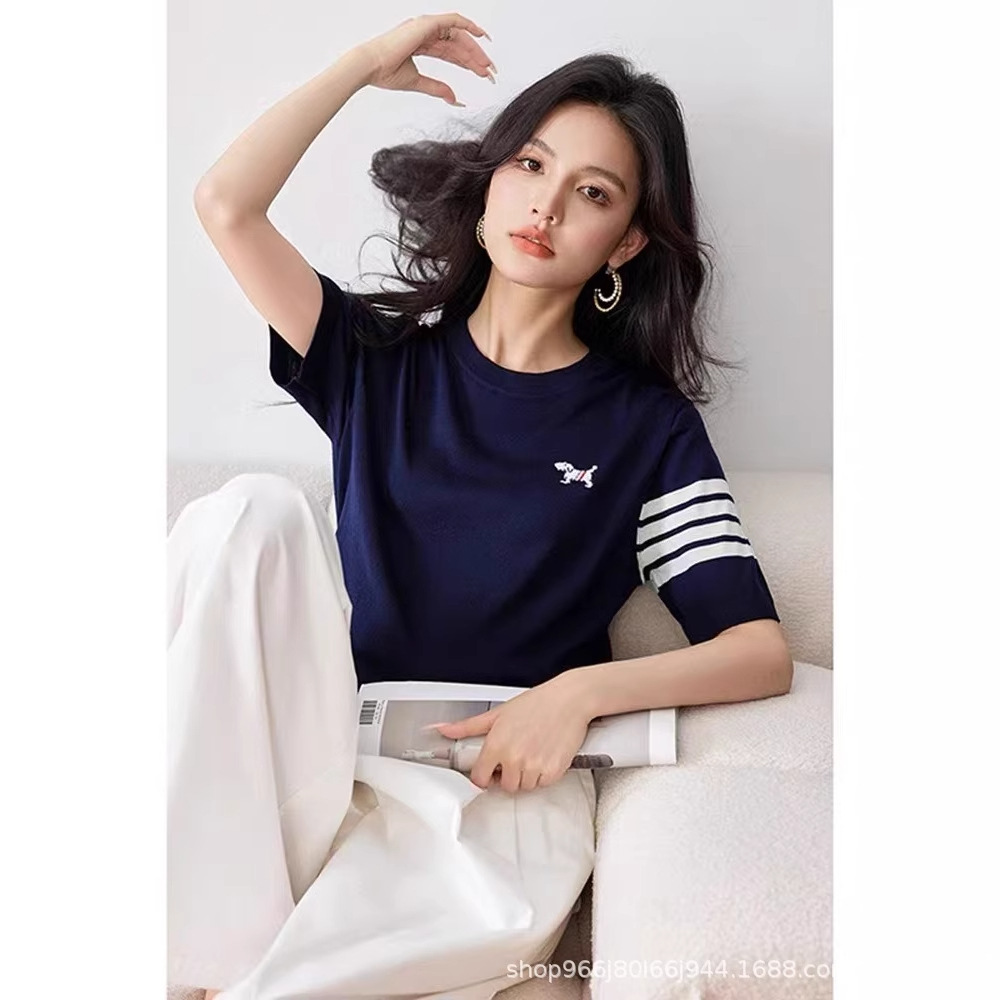 TB四杠小狗提花针织T恤深圳南油高端25春夏新款韩系学院风短袖女