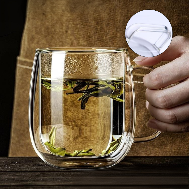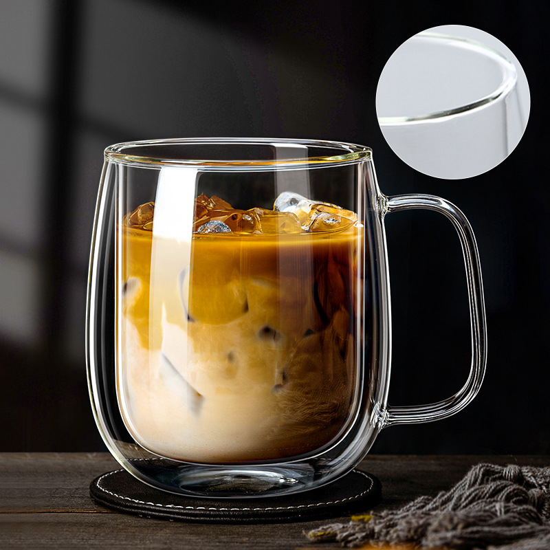 高硼硅双层玻璃杯耐高温家用水杯透明把手马克杯咖啡杯双层玻璃杯