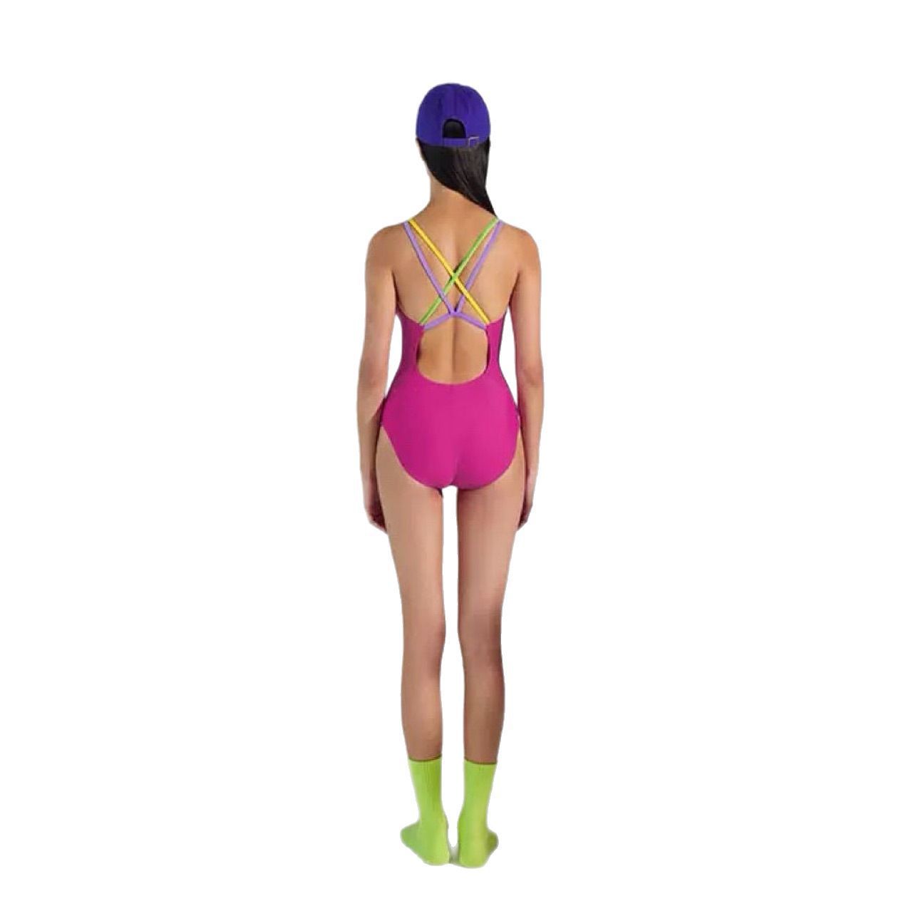 2026新款双层多色肩带连体紧身竞技泳衣女专业运动训练中叉遮肚显