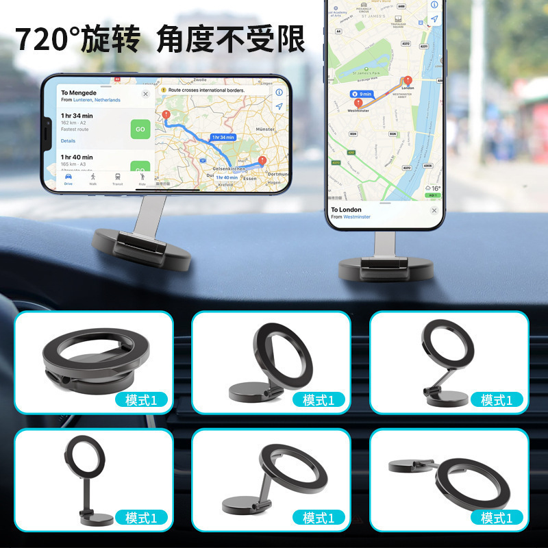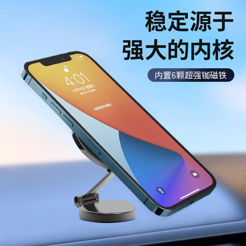 跨境2024旋转磁吸车载式手机 支架 折叠高端强磁仪表台汽车导航架
