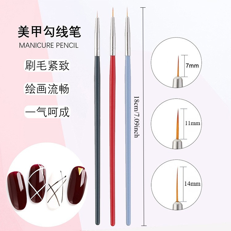 美甲拉线笔新手彩绘笔超细拉花笔三色拉线笔套装美甲店专用直销
