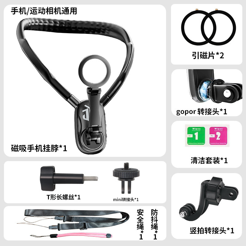 挂脖支架,磁吸手机+Gopro运动相机自由转换,源头厂家直销