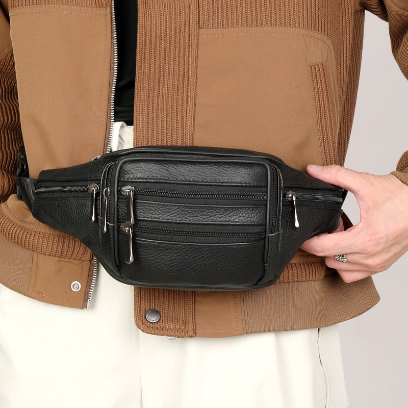 跨境PU腰包批发高颜值男士斜挎包多隔层生意收银包户外运动手机包