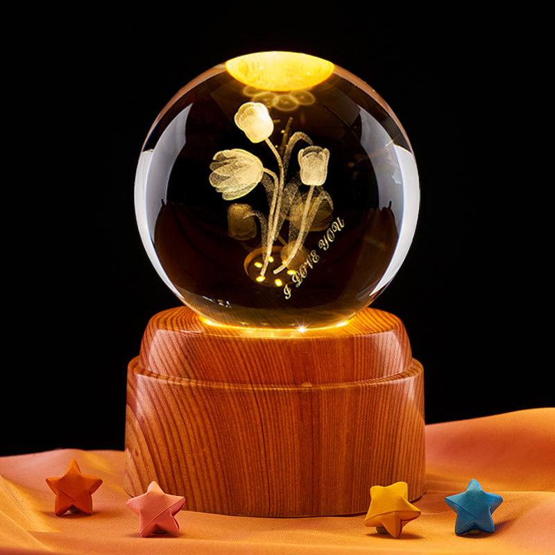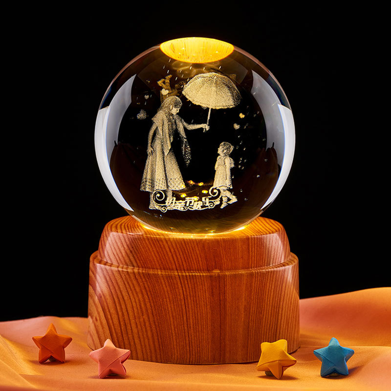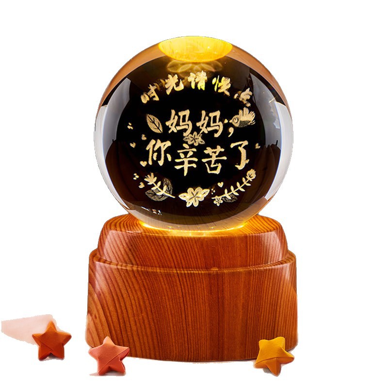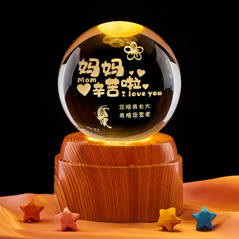 母亲节激光内雕水晶球小夜灯 发光水晶球桌面摆件装饰节日礼品