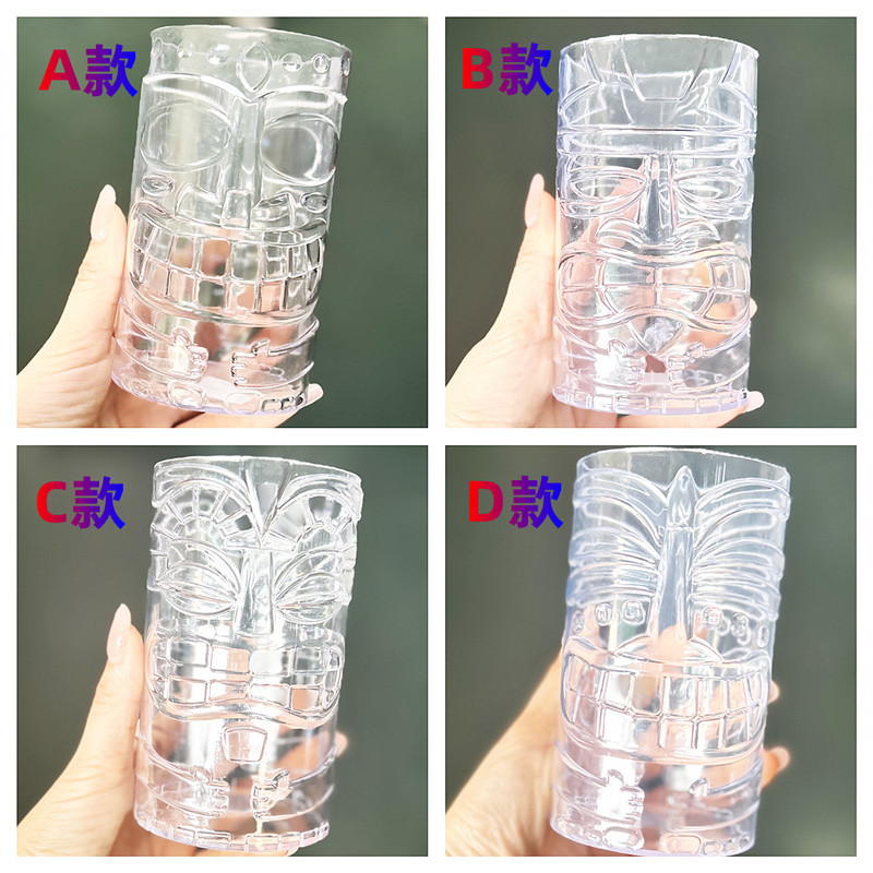 厂家图腾杯加厚tiki鸡尾酒杯鬼脸提基杯酒吧人脸酒杯僵尸杯子塑料