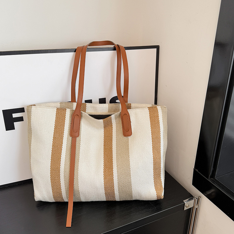 大学生帆布包女2024新款大容量上课包ins单肩帆布袋通勤布包大包