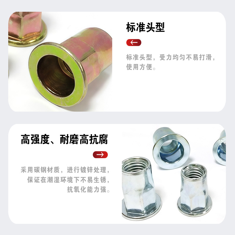 平头半六角拉铆螺母 彩锌白锌螺母 现货 紧固件GB/T17880