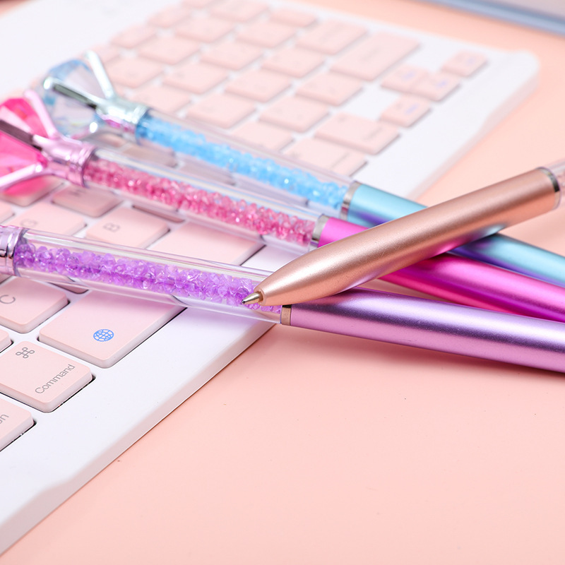 跨境仿金属感水晶钻石圆珠笔优品彩色ins签字0.7mm蓝色圆珠笔批发