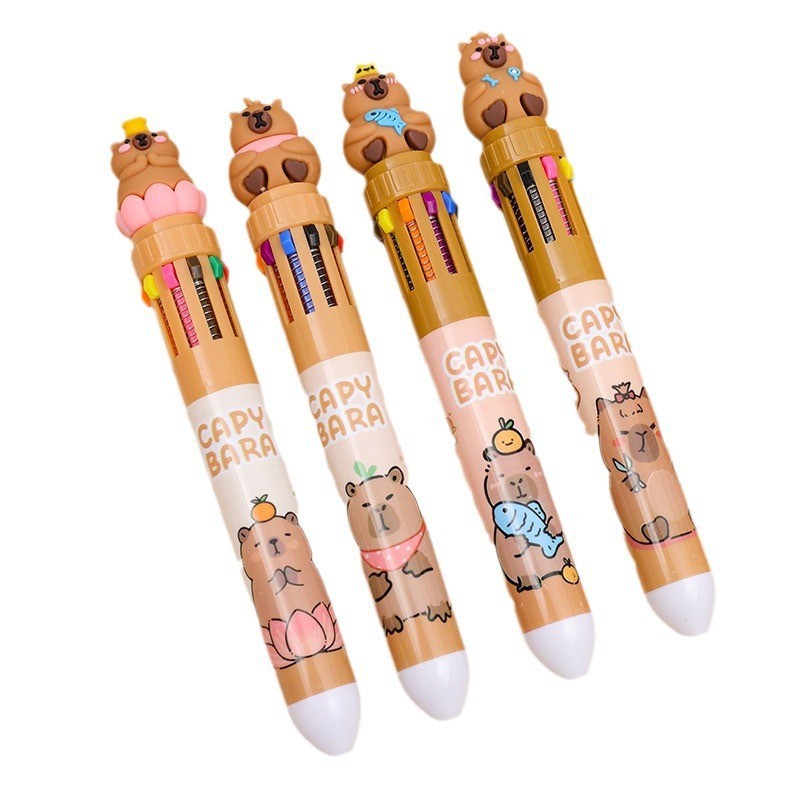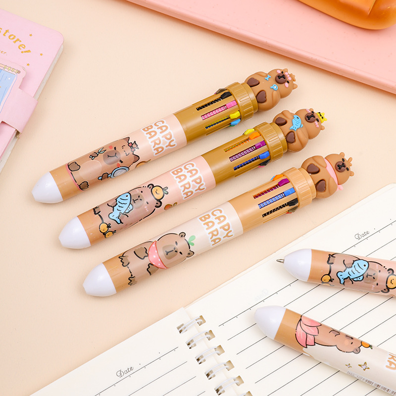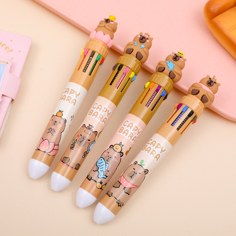爆款卡皮巴拉十色圆珠笔可爱多色合一按动中性笔学生油彩笔按压式
