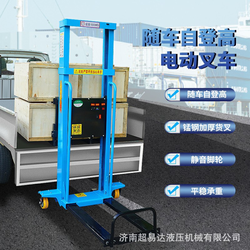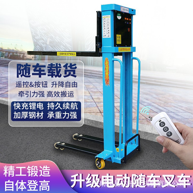 半电动随车堆高车自体登高车1吨便携式升高车搬运叉车自动装卸货