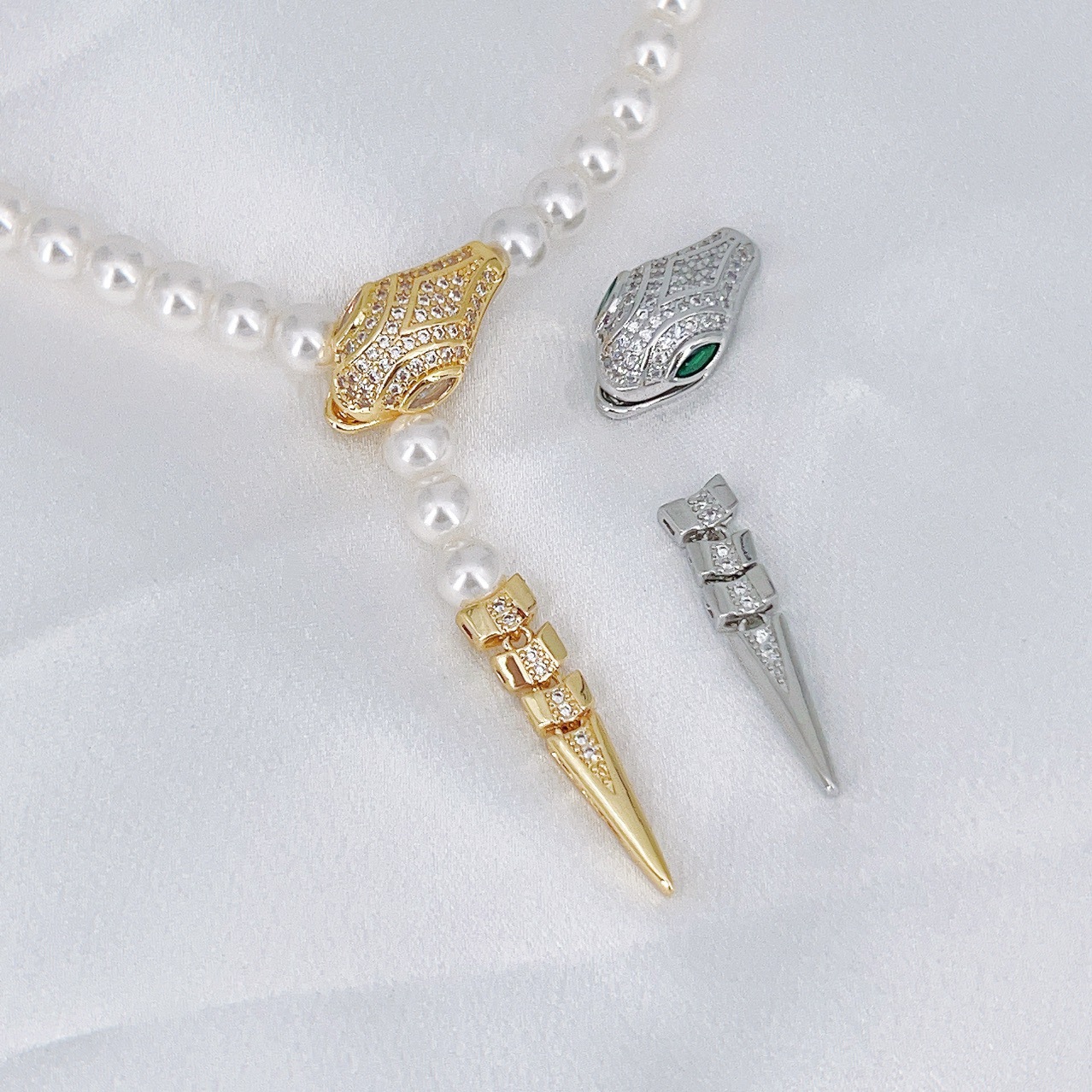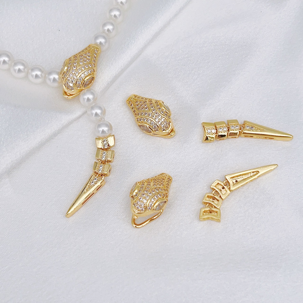 14k包金微镶锆石蛇头扣diy手链项链扣珍珠扣毛衣链保色扣子