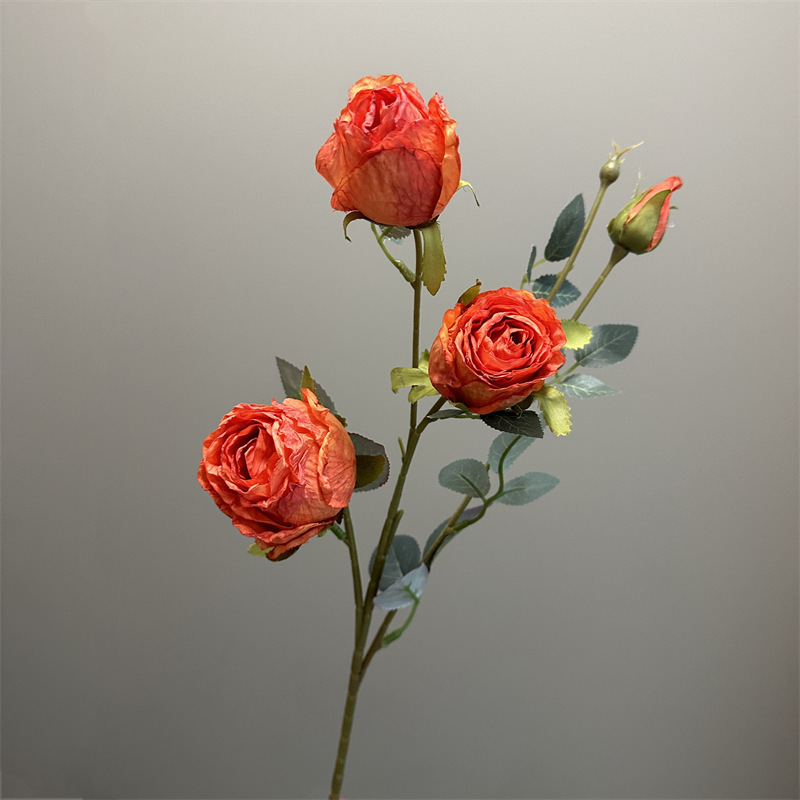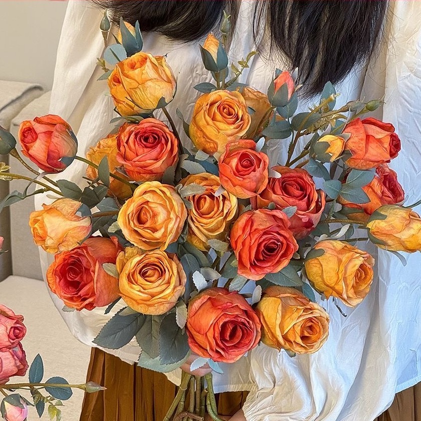 复古焦边玫瑰仿真花干枯烧边雪山油画玫瑰家居婚庆装饰人造花批发